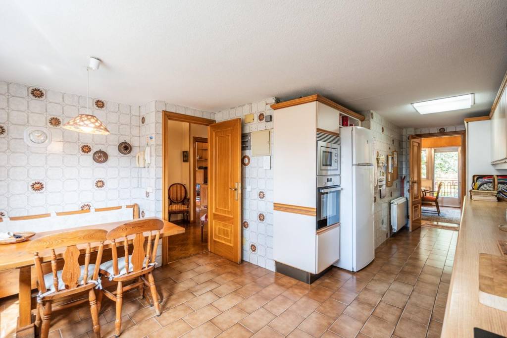 La cocina, en forma de L, es luminosa y práctica, con dos accesos que facilitan el día a día. Esta planta también cuenta con un dormitorio (actualmente habilitado como sala de estar) con armarios empotrados, ideal como despacho o cuarto de invitados, y un aseo de cortesía.