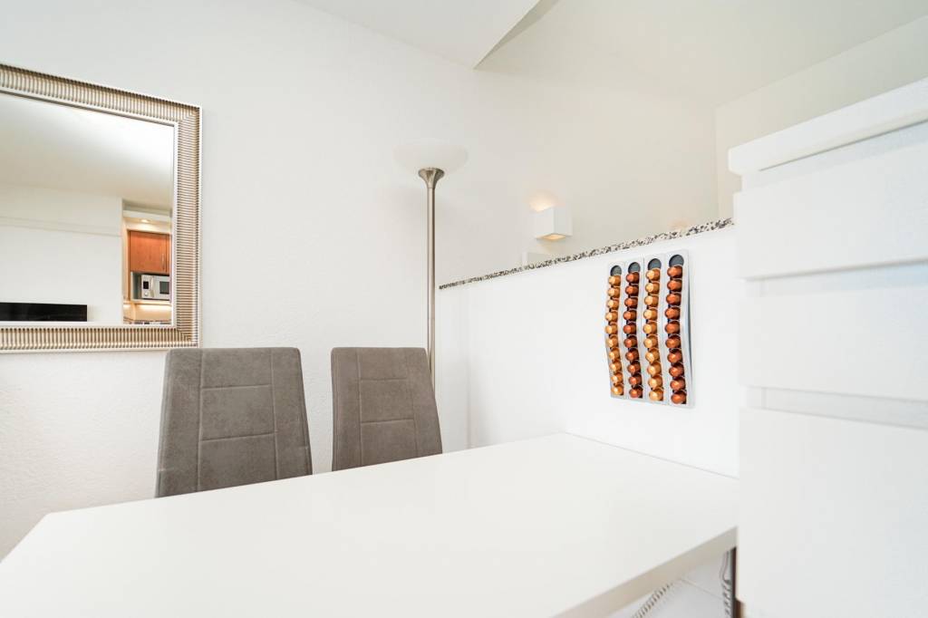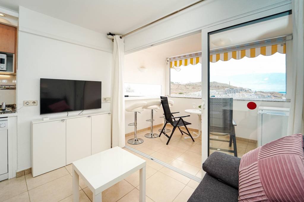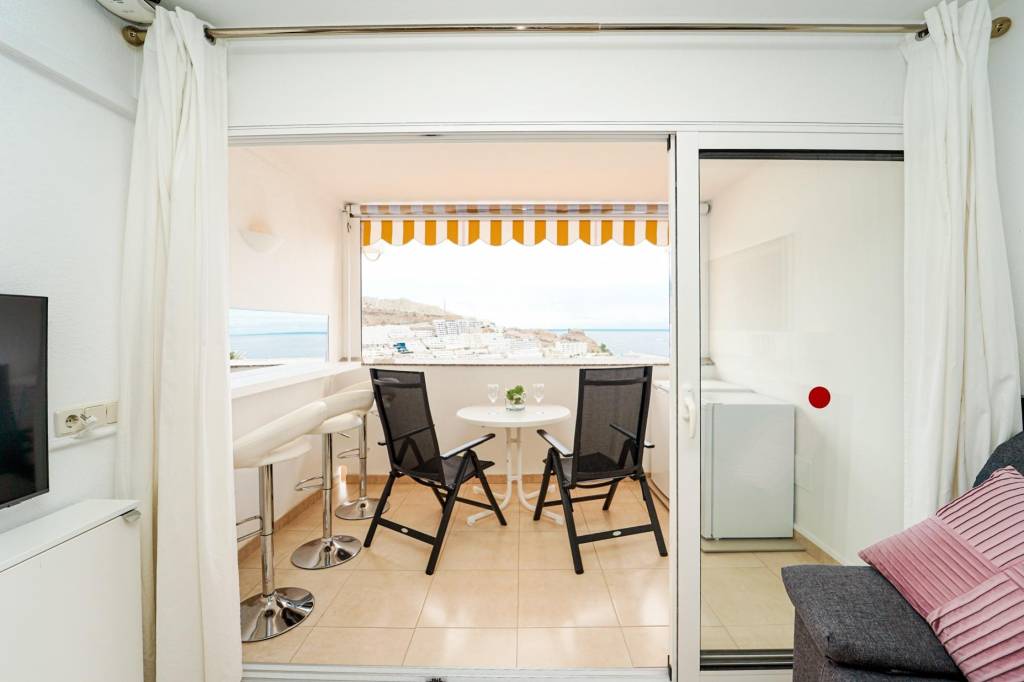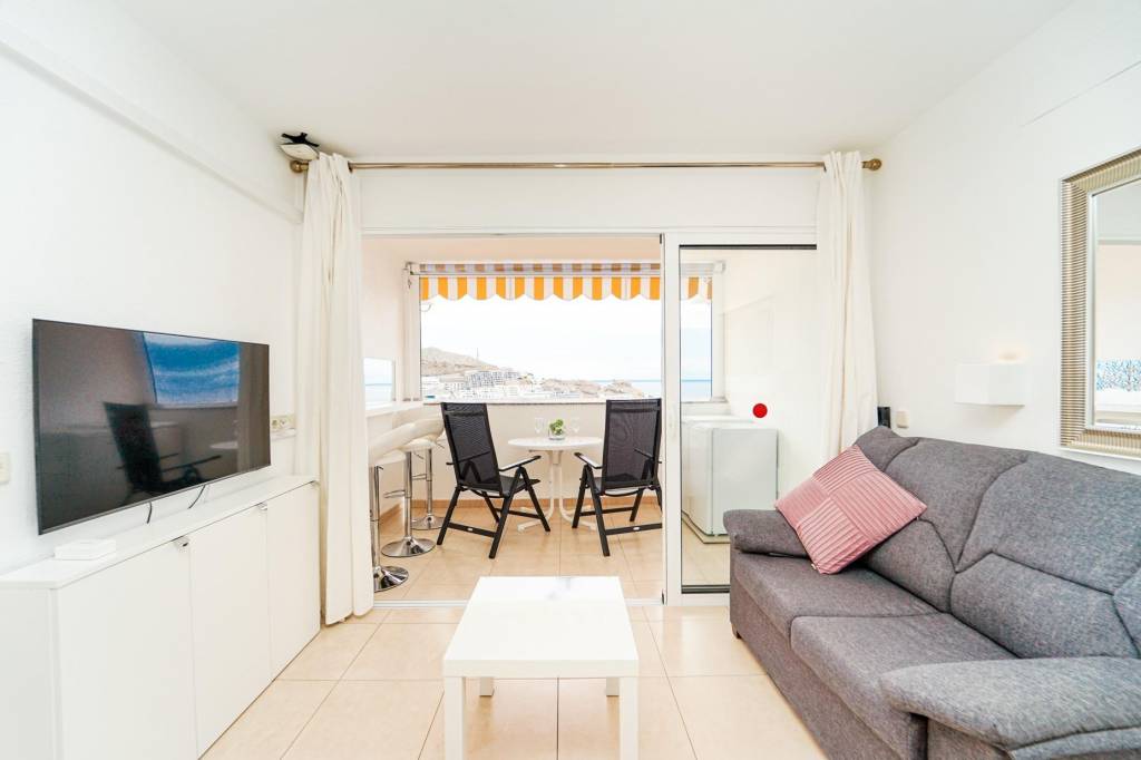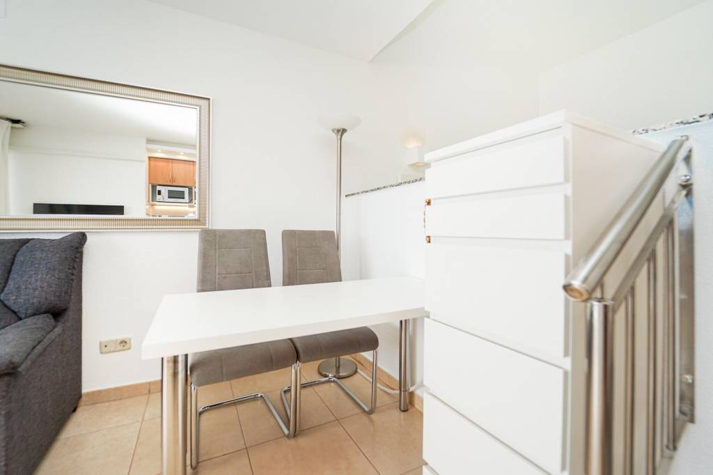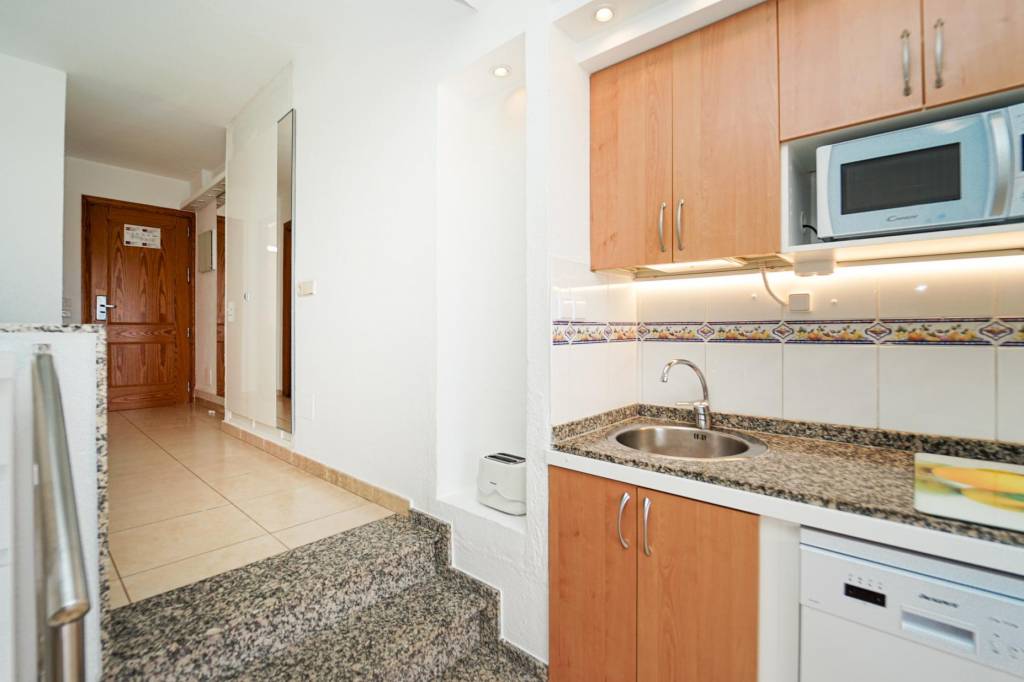 Este acogedor estudio ha sido mejorado en los últimos años, ofreciendo una iluminación moderna y un aprovechamiento más eficiente de los espacios, creando un ambiente cómodo y funcional. La cocina está equipada con lavavajillas, y se ha instalado una práctica barra en la terraza para que disfrutes aún más de las vistas al mar.