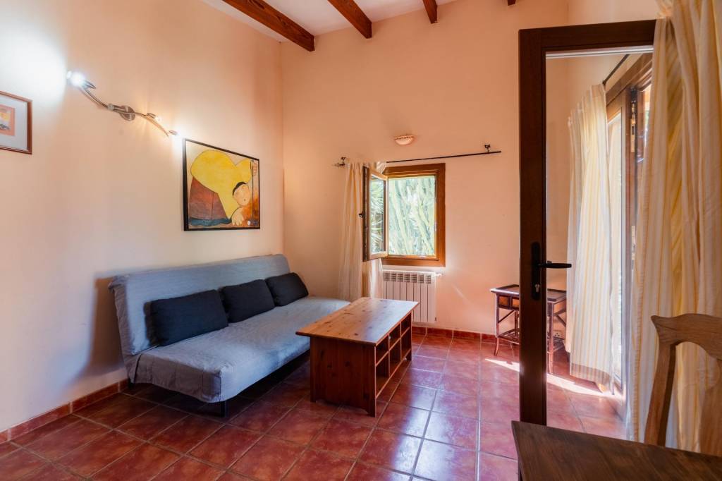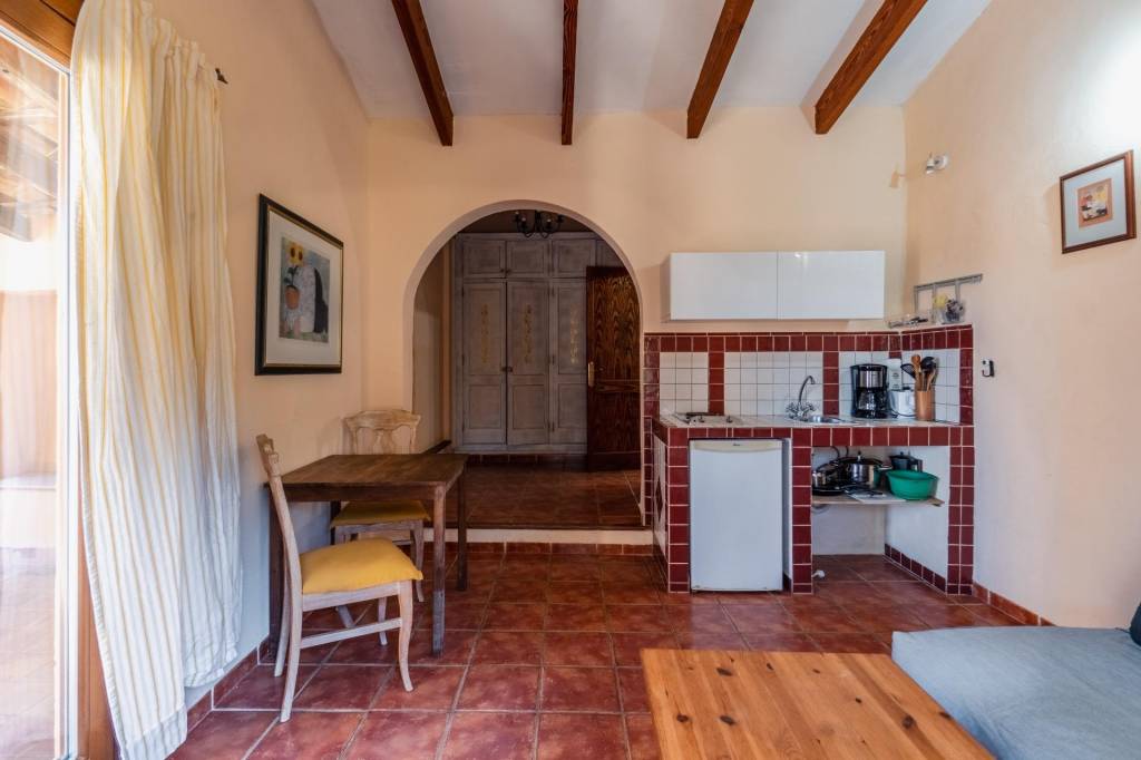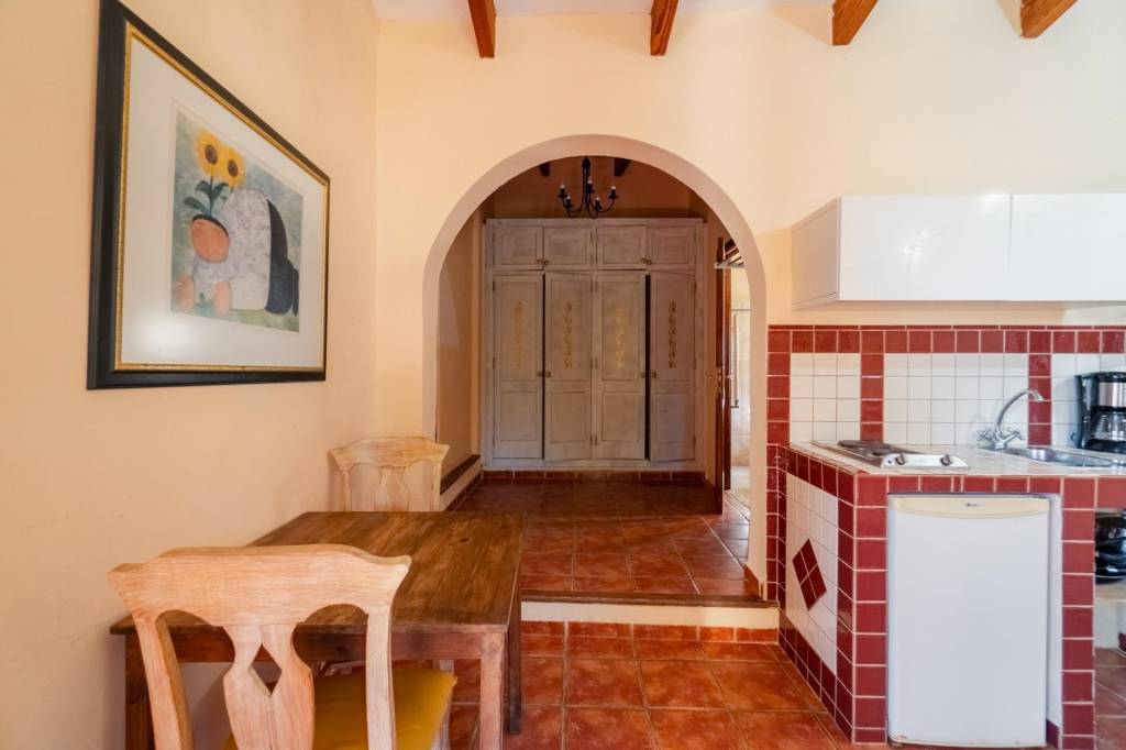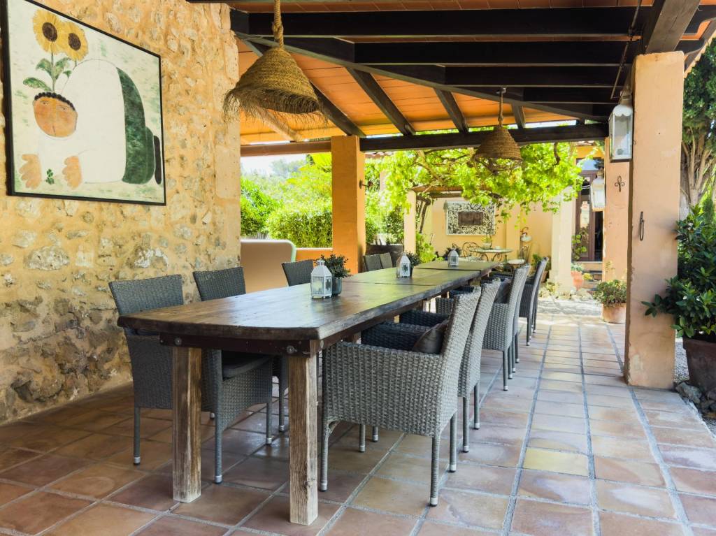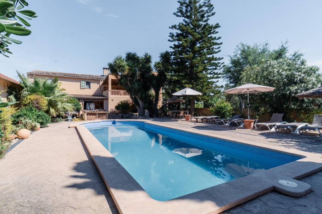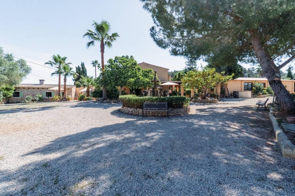 La finca se encuentra en una parcela de 34.000 m² y dispone de una amplia piscina, jardines con palmeras, terrazas, porches, zona de huerta, zona de aparcamiento y espacio para eventos al aire libre. En su interior cuenta con una vivienda principal, cinco apartamentos dobles totalmente equipados con cocina, baño y terraza, además de cuatro habitaciones dobles con baño privado, sala de reuniones y dos estancias adicionales para empleados o cuidadores.