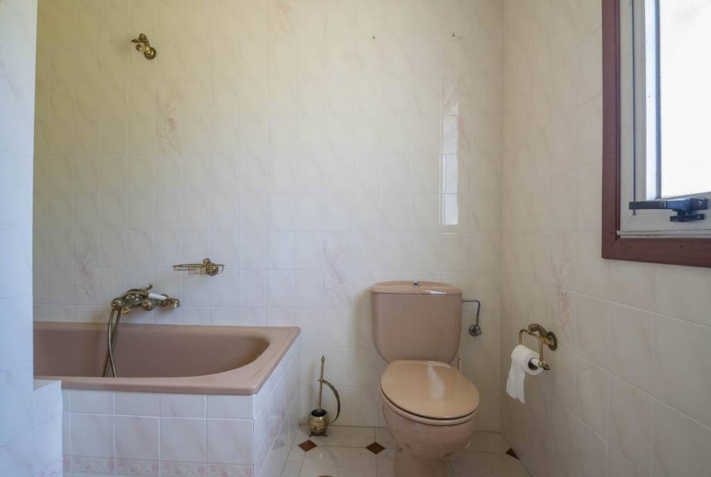 Dispone de 2 habitaciones dobles y una sencilla, además de 2 baños completos, incluyendo un baño en suite para mayor comodidad. La propiedad se encuentra para entrar a vivir, con carpintería interior de sapeli, suelo de terrazo y ventanas de aluminio.