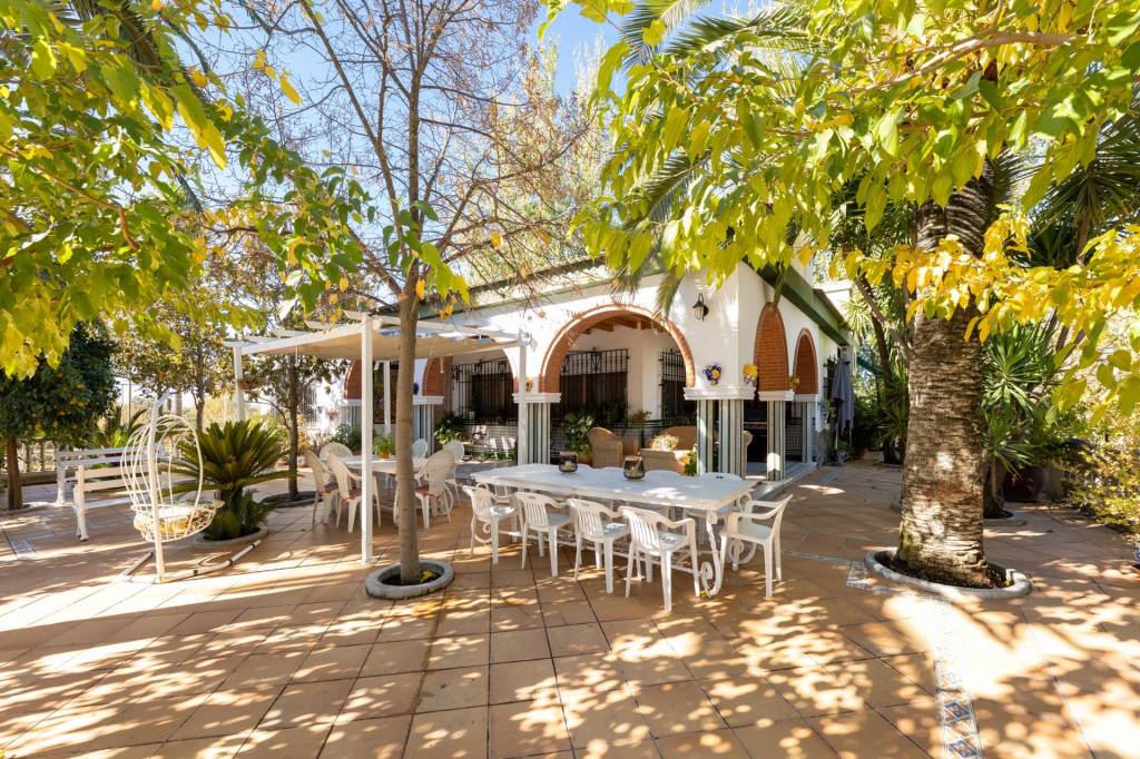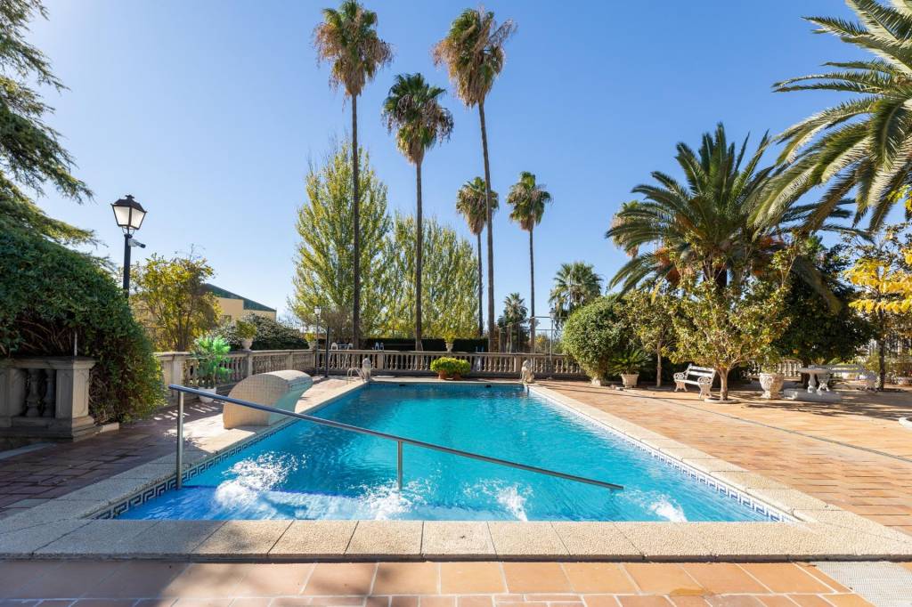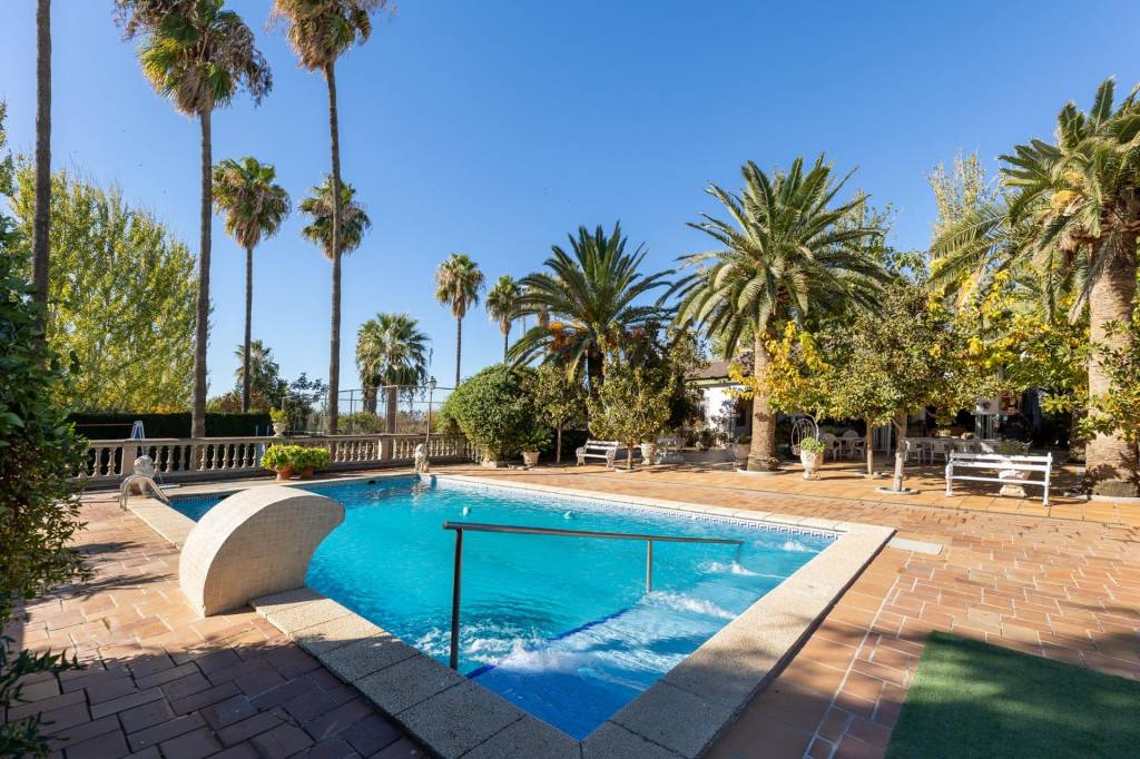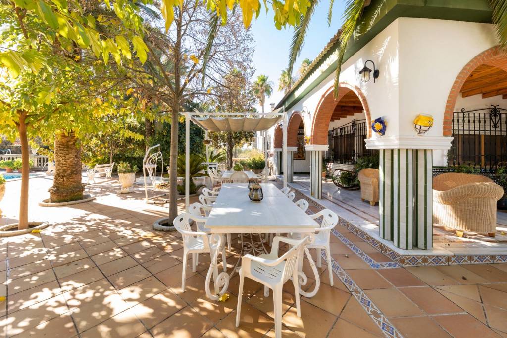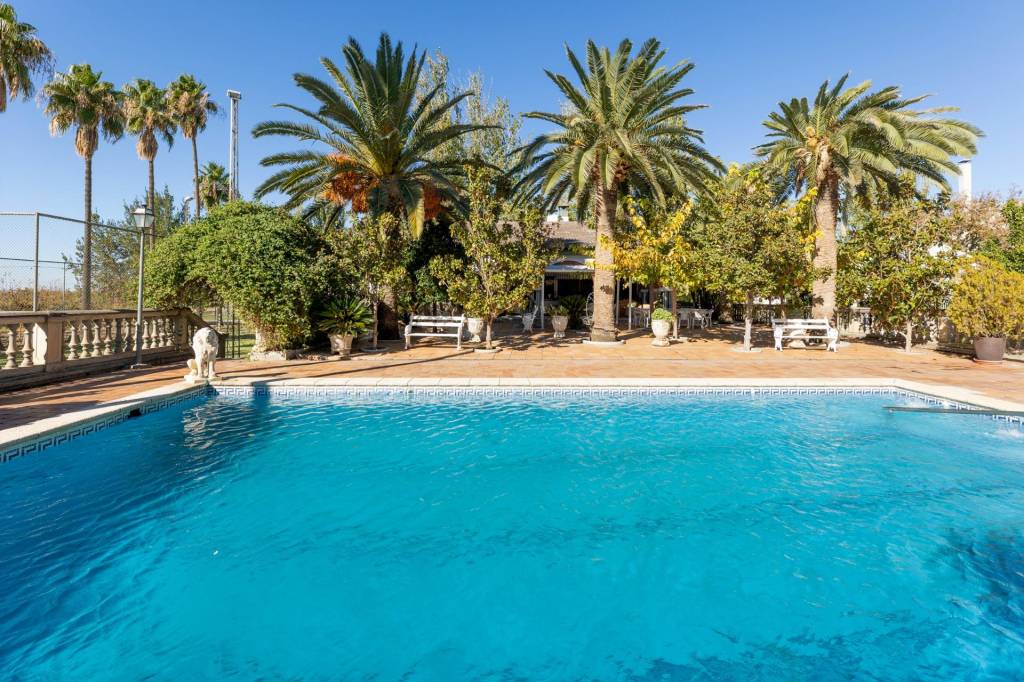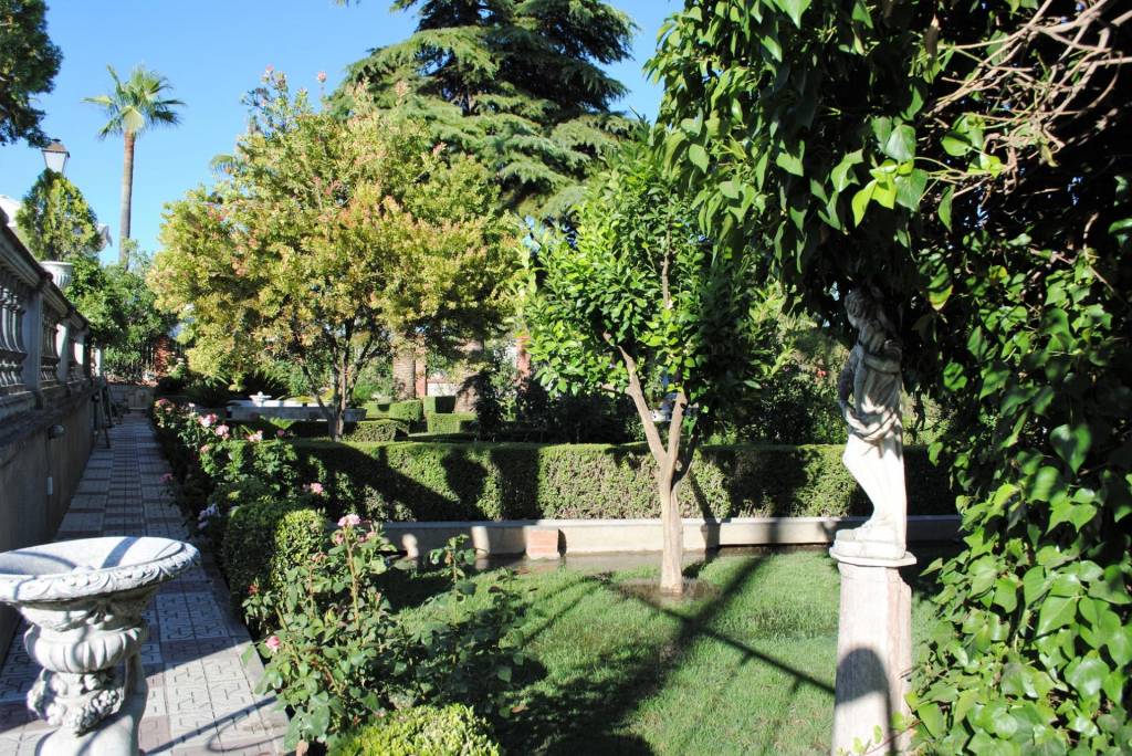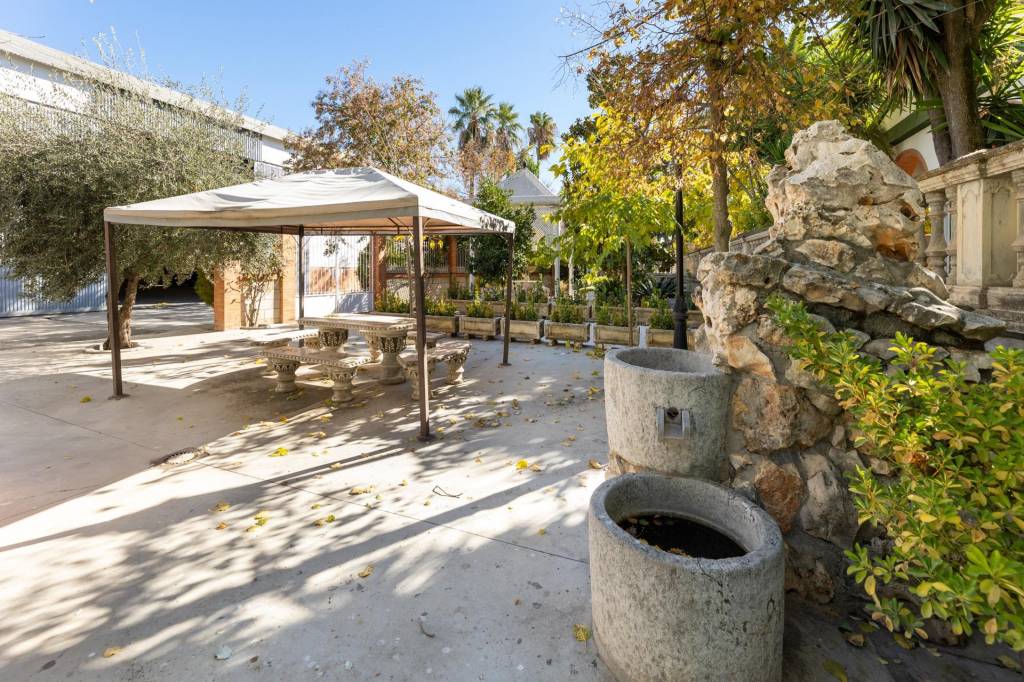 Encontraremos amplios jardines de estilo árabe, con estatuas y bancos de piedra, fuentes y cascadas. Todo ello en perfecto estado de conservación y con riego automático. Por si todo ello fuera poco, la piscina se está renovando completamente, y el afortunado comprador de este inmueble podrá disfrutarla y estrenarla próximamente.