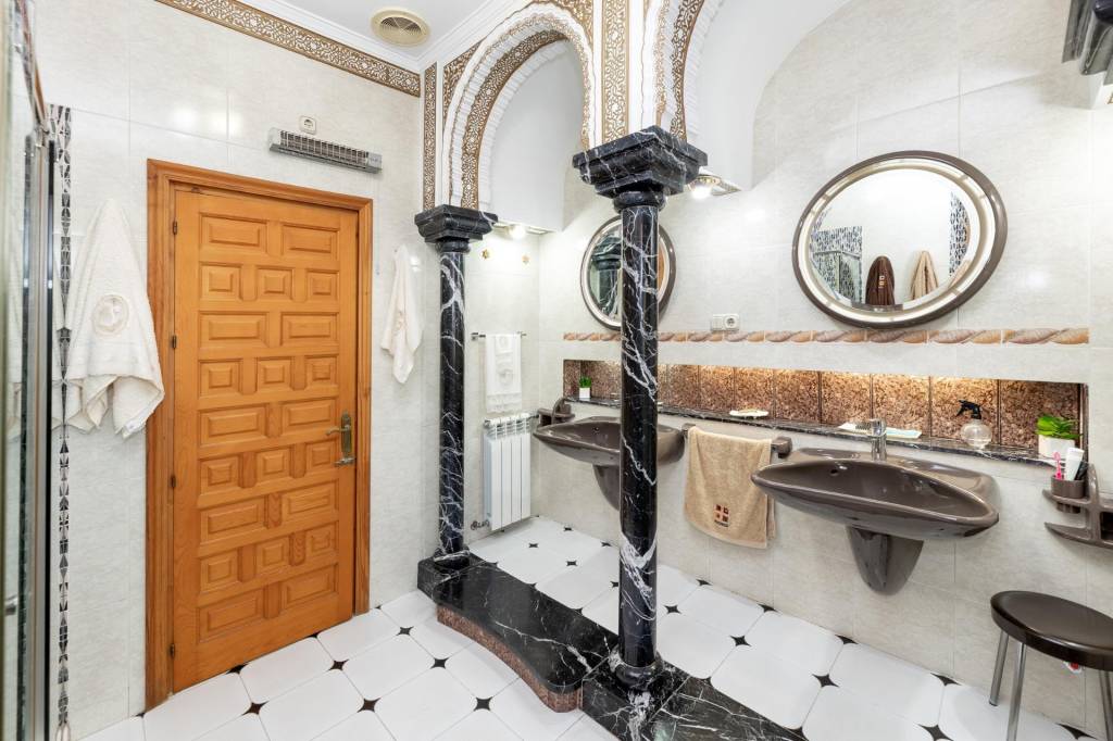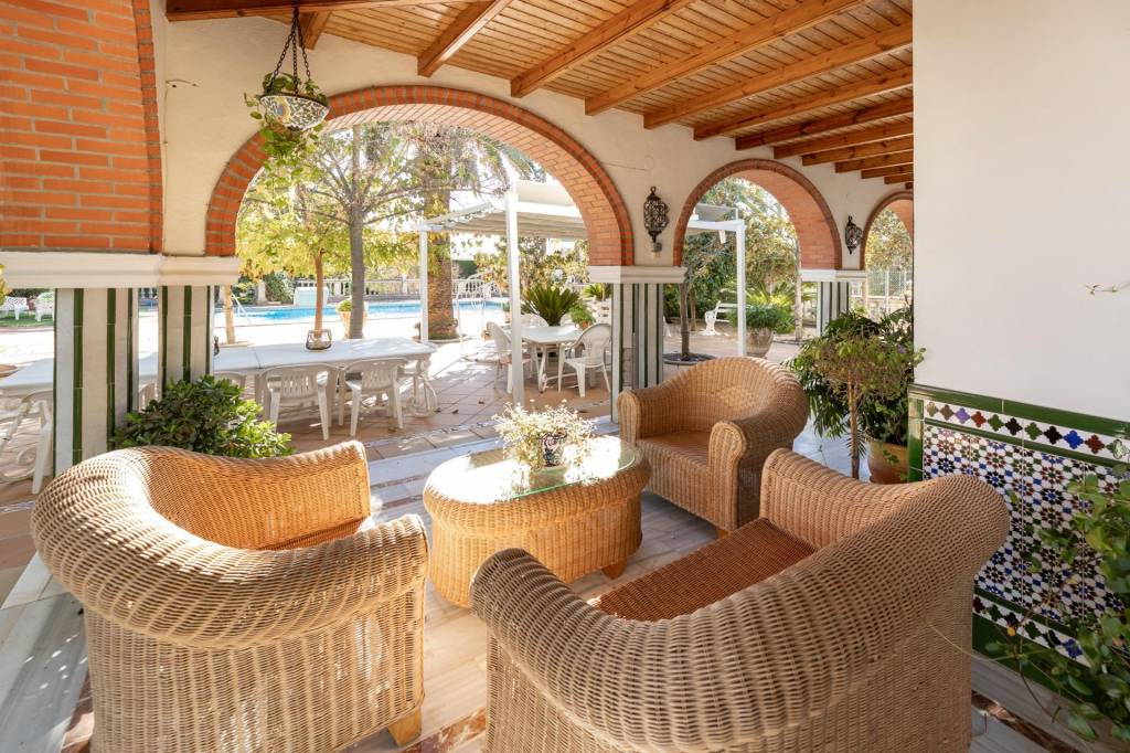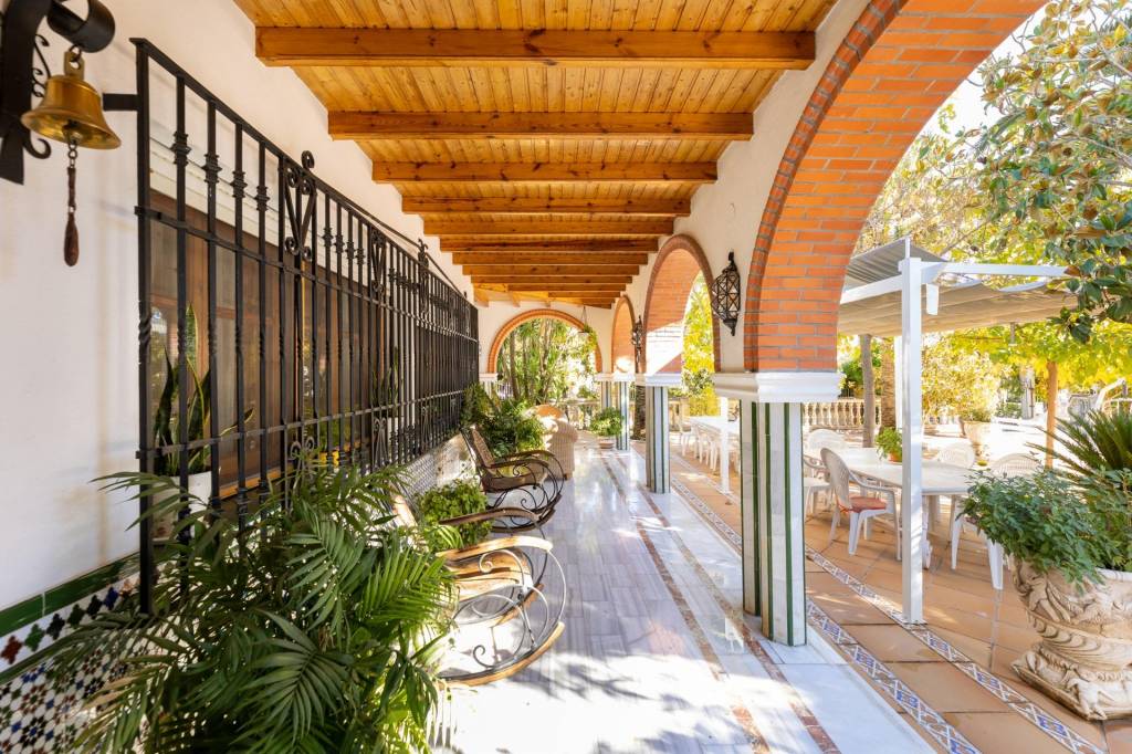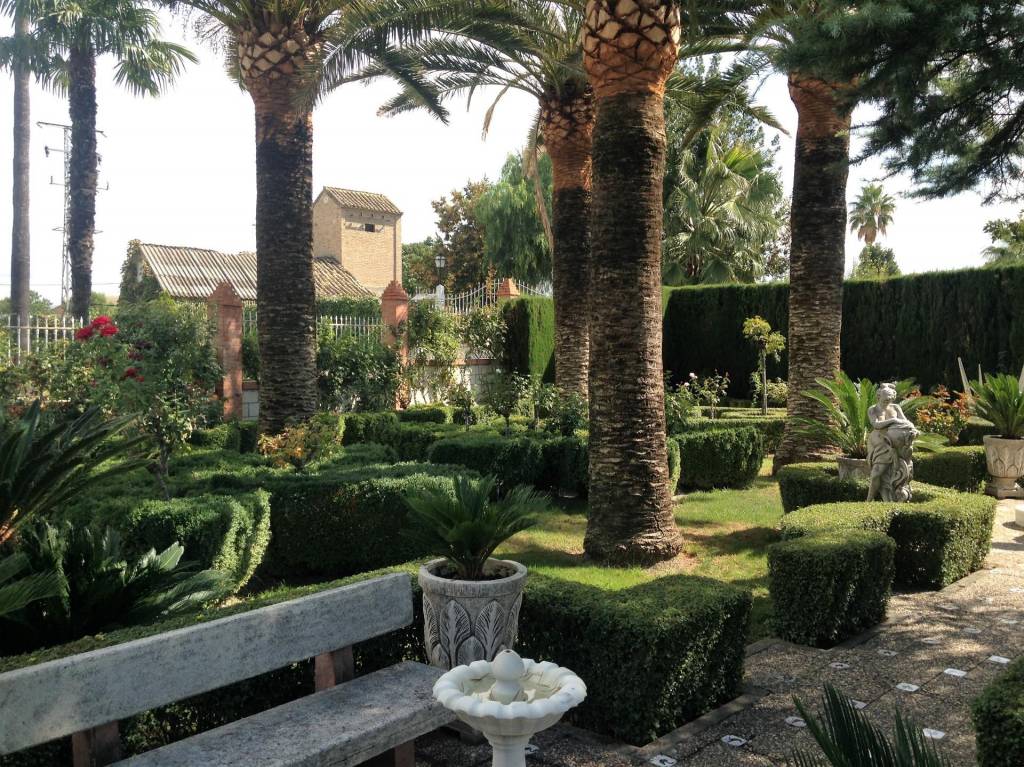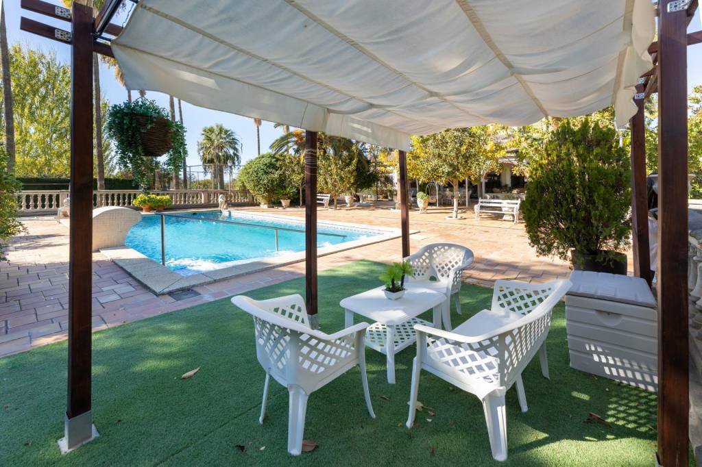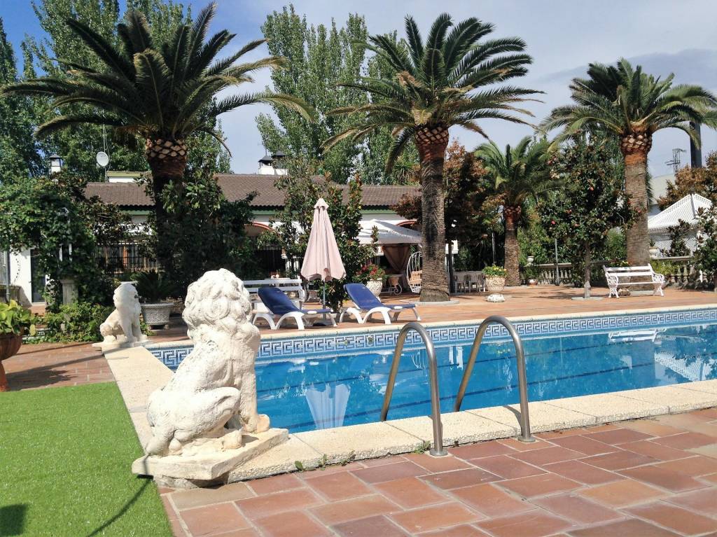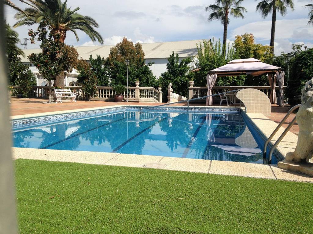Encontraremos amplios jardines de estilo árabe, con estatuas y bancos de piedra, fuentes y cascadas. Todo ello en perfecto estado de conservación y con riego automático. Por si todo ello fuera poco, la piscina se está renovando completamente, y el afortunado comprador de este inmueble podrá disfrutarla y estrenarla próximamente.
