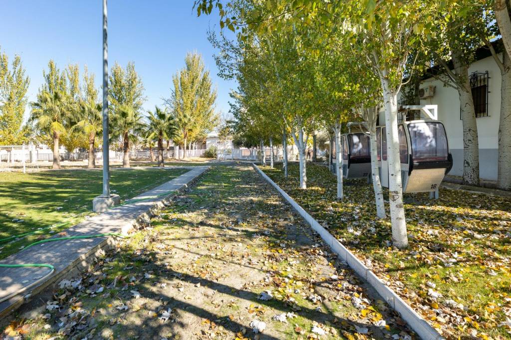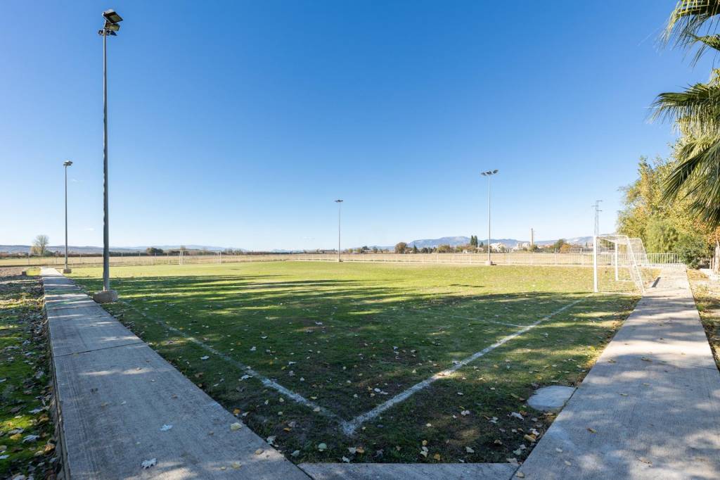 Podremos disfrutar de zonas de columpios para los más pequeños, una pista de tenis de césped artificial y un fantástico campo de fútbol de césped natural para los aficionados al deporte.