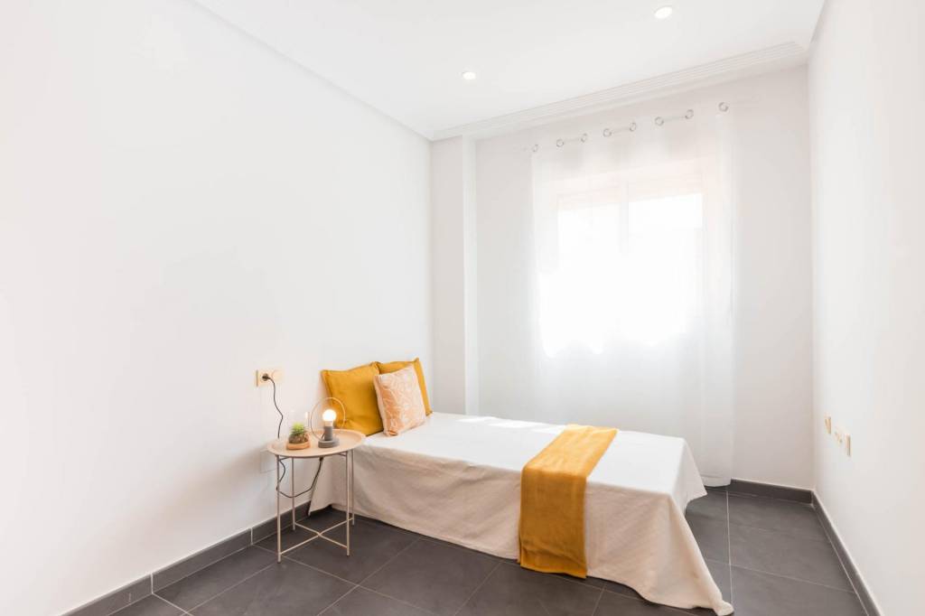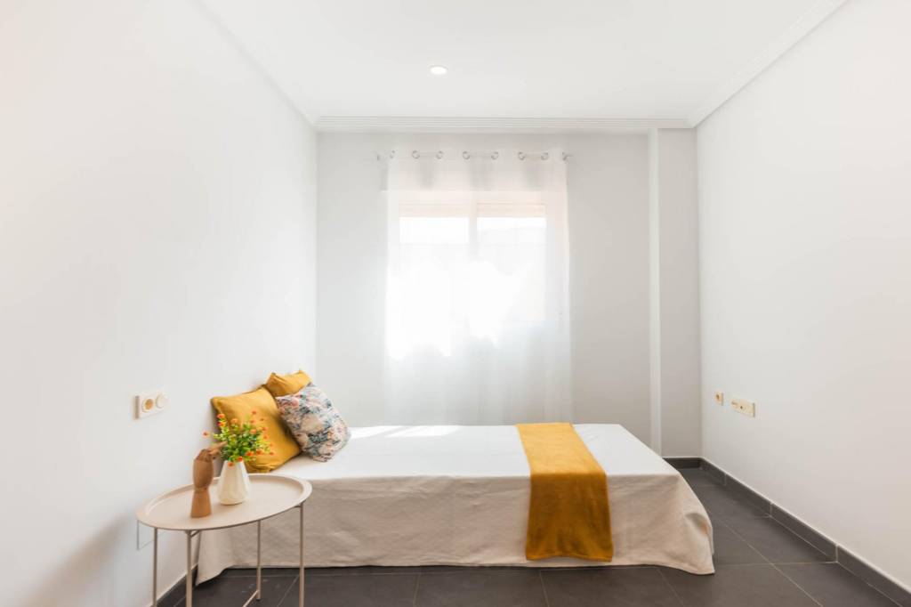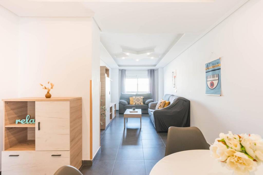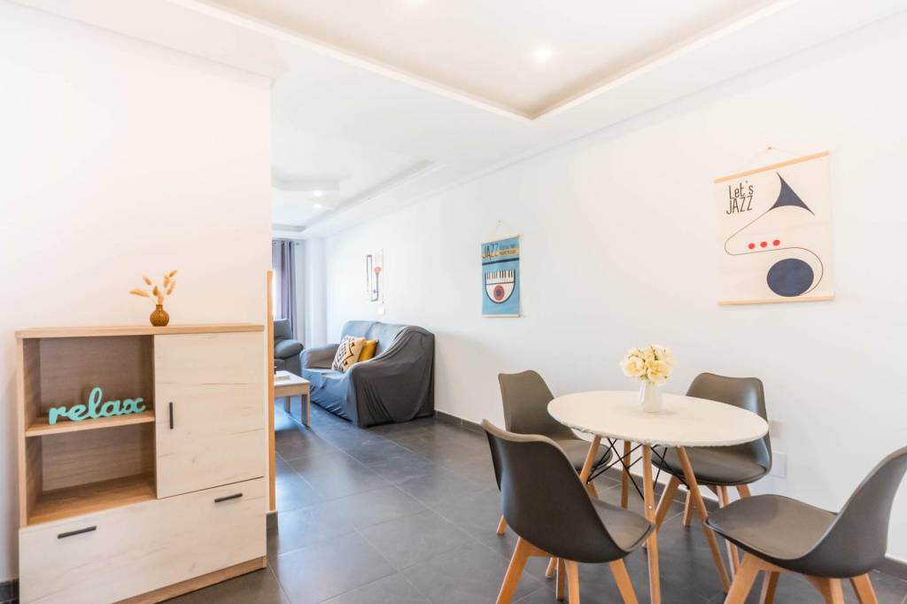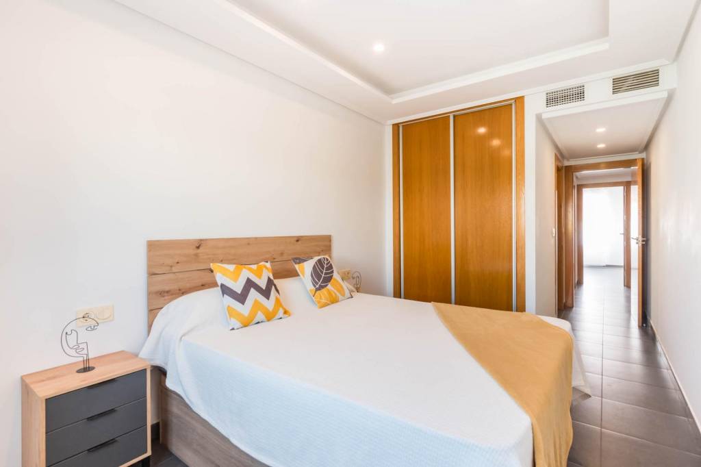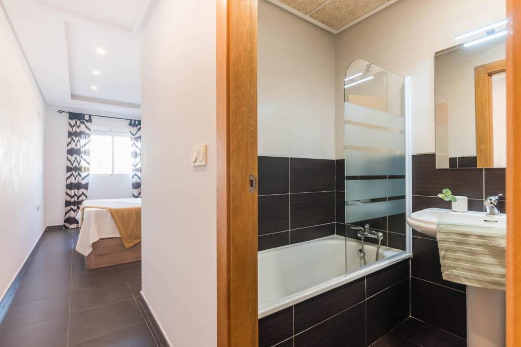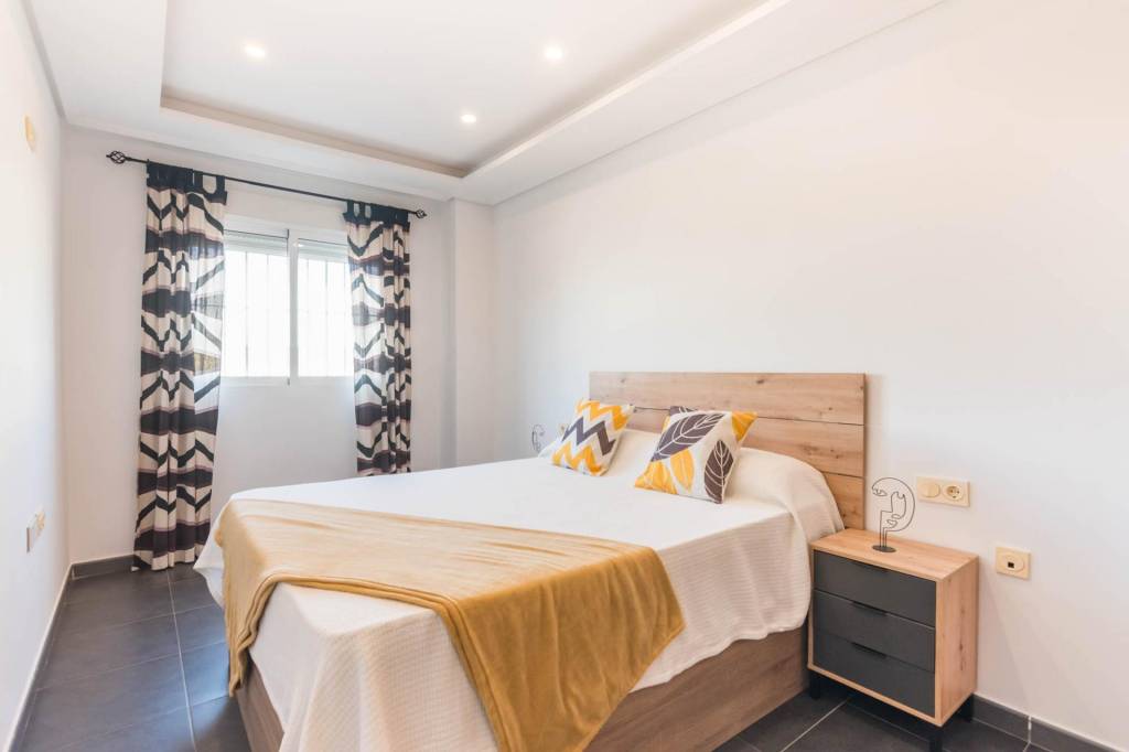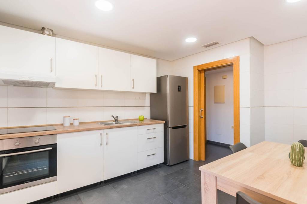 Está compuesto por tres amplias habitaciones, dos cuartos de baño, salón, cocina independiente equipada y por la cual se accede al amplio patio de 32 m del cual dispone del uso y disfrute y donde podrás pasar fantásticos momentos en compañía de los tuyos. También tiene una plaza de garaje y un trastero.