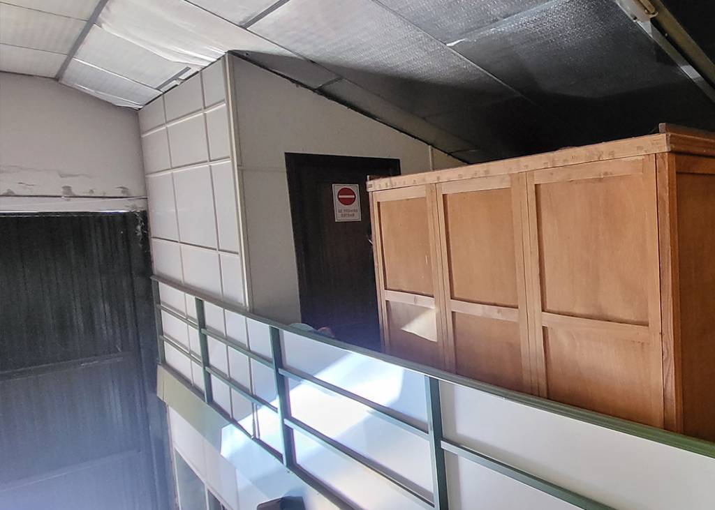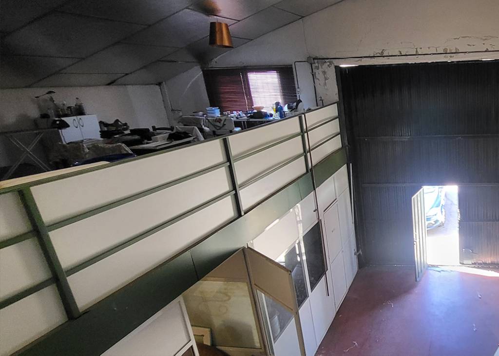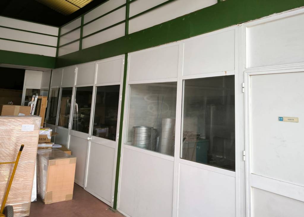 Zona de Oficinas: Dispone de cuatro módulos de oficinas independientes, cada uno de aproximadamente 14 m², equipados con climatización para un ambiente de trabajo óptimo. Esta área cuenta con un techo transitable y escalera de acceso, ofreciendo flexibilidad y posibilidades de ampliación.