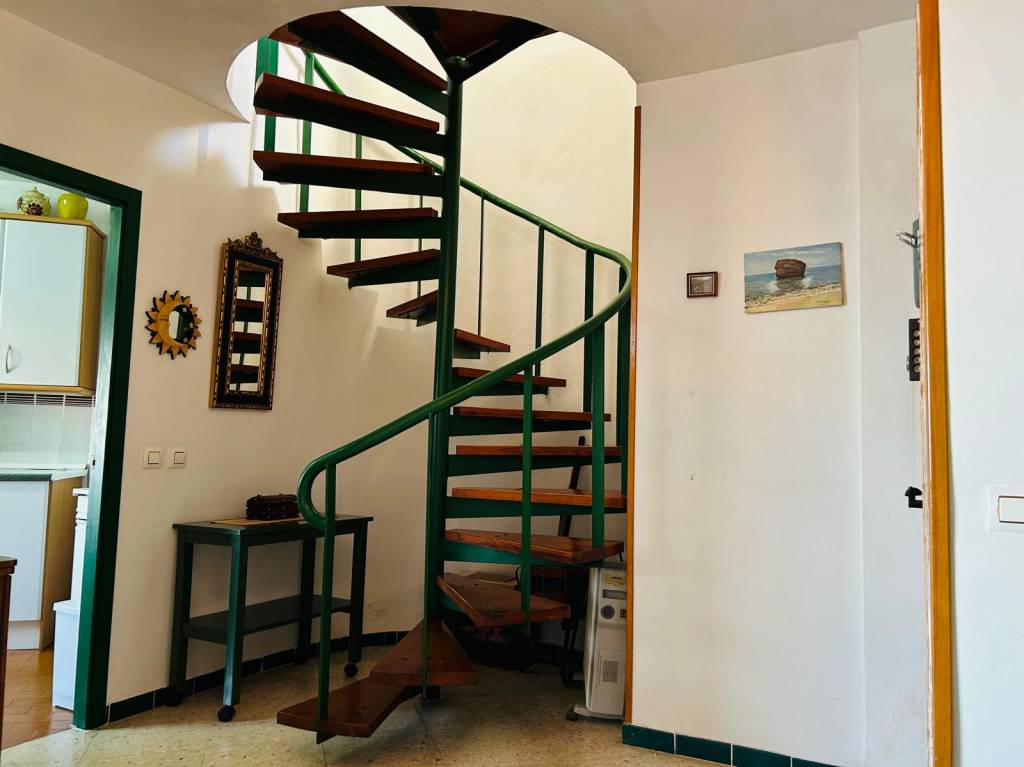 El corazón de la planta principal es su salón con balcón, un espacio luminoso y acogedor donde relajarse y disfrutar del ambiente. Desde aquí, podrás acceder a la cocina, diseñada para ser práctica y funcional. La conexión entre ambas plantas se realiza a través de una original escalera de caracol, que añade un toque de encanto y singularidad a la vivienda.