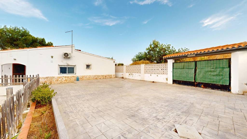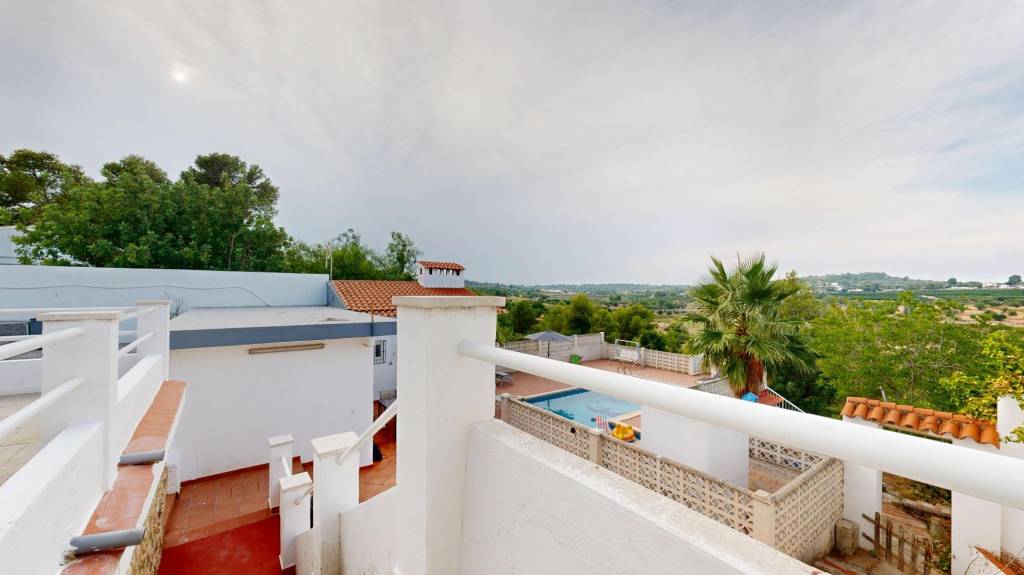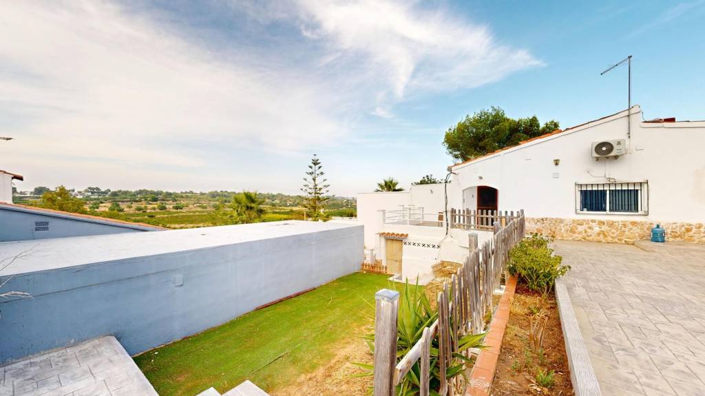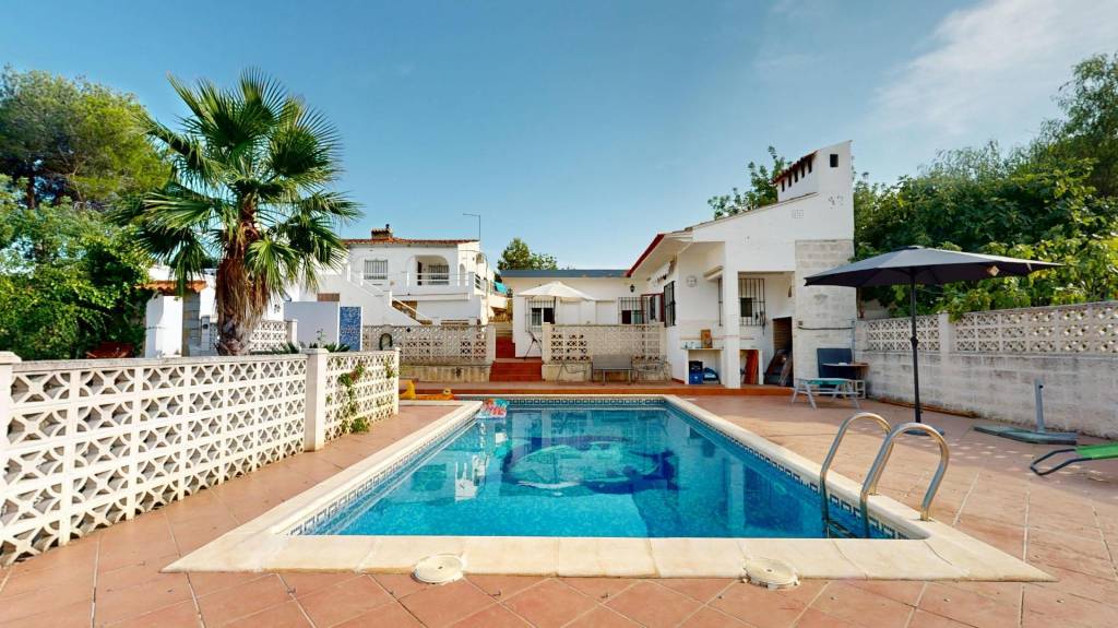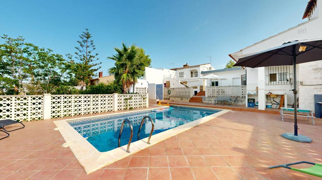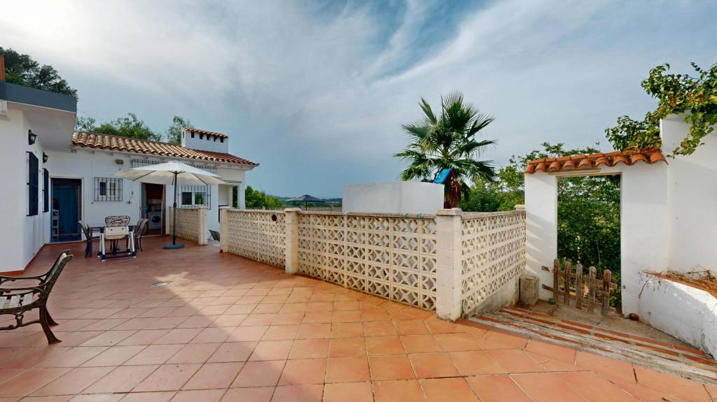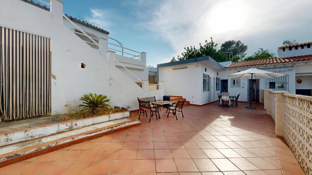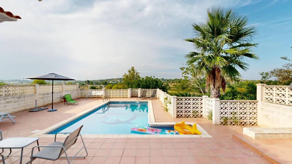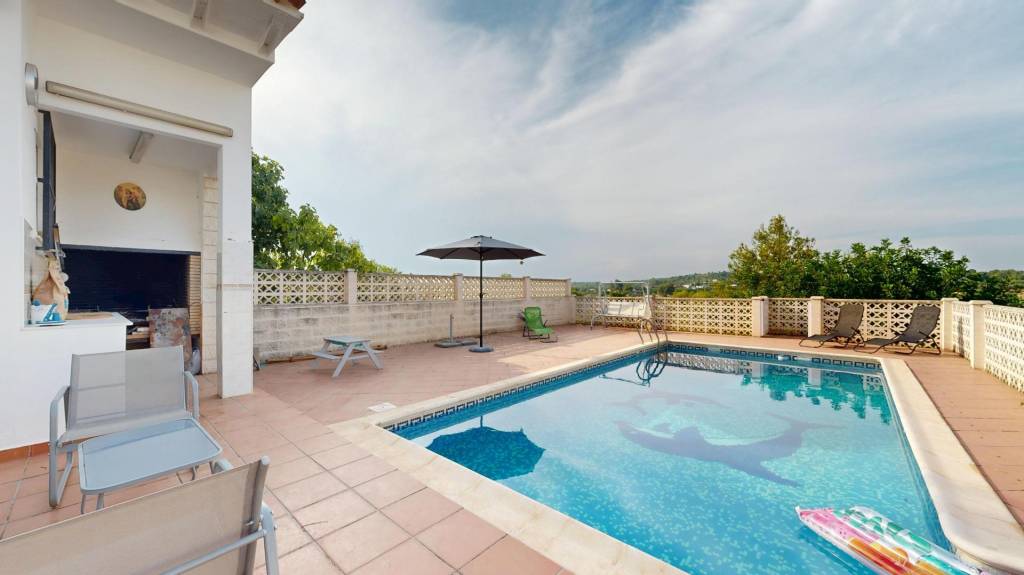 En el exterior, un amplio terreno que garantiza privacidad y espacio para disfrutar al aire libre con amplias zonas de terraza, zonas para ajardinar, una barbacoa y paellero, trastero, pozos ciegos y la joya de esta propiedad es su piscina exterior.
