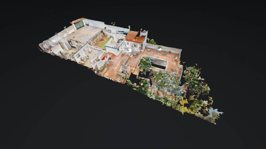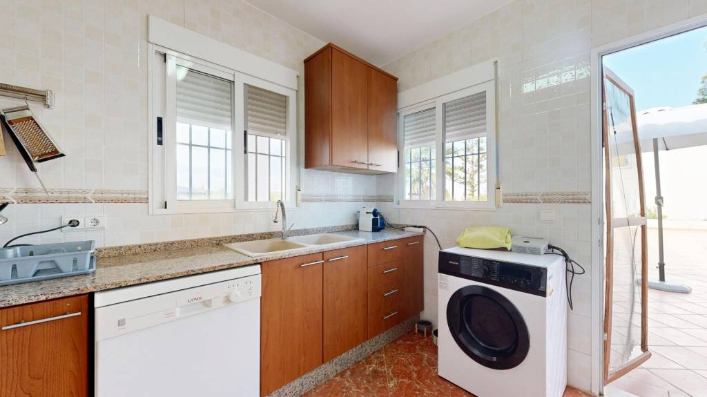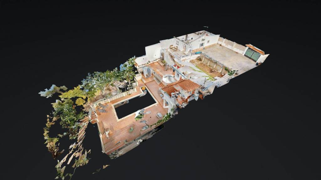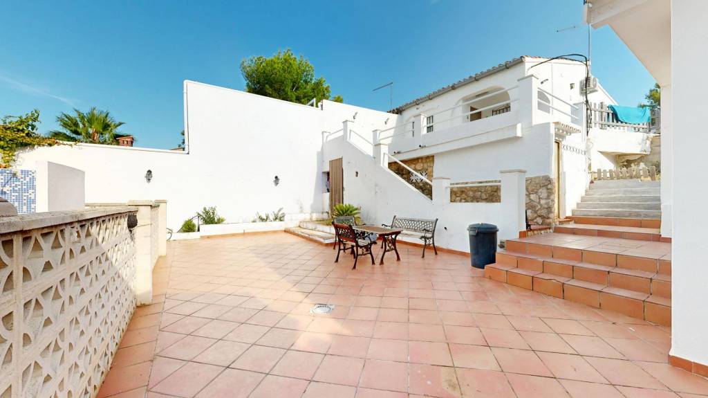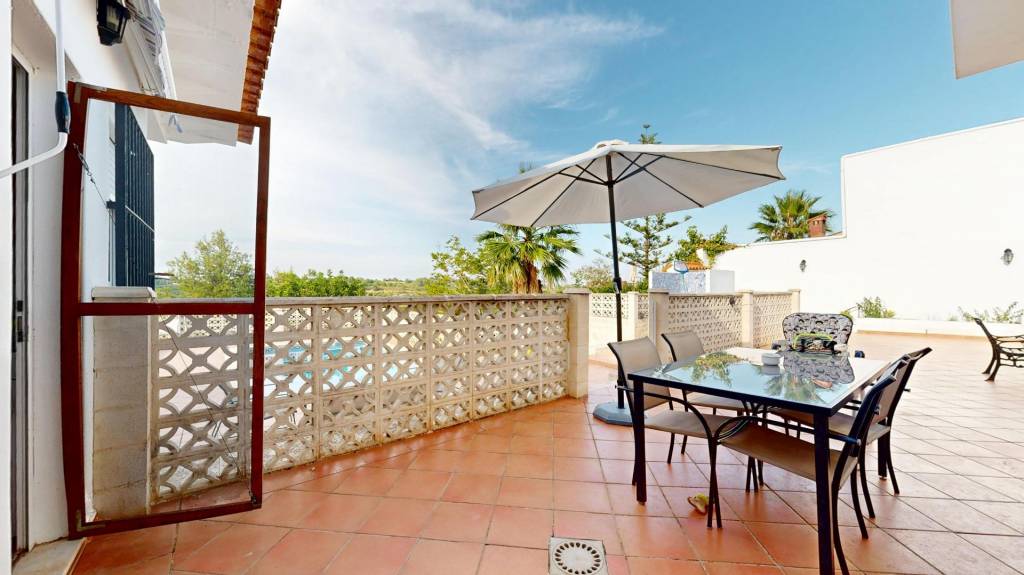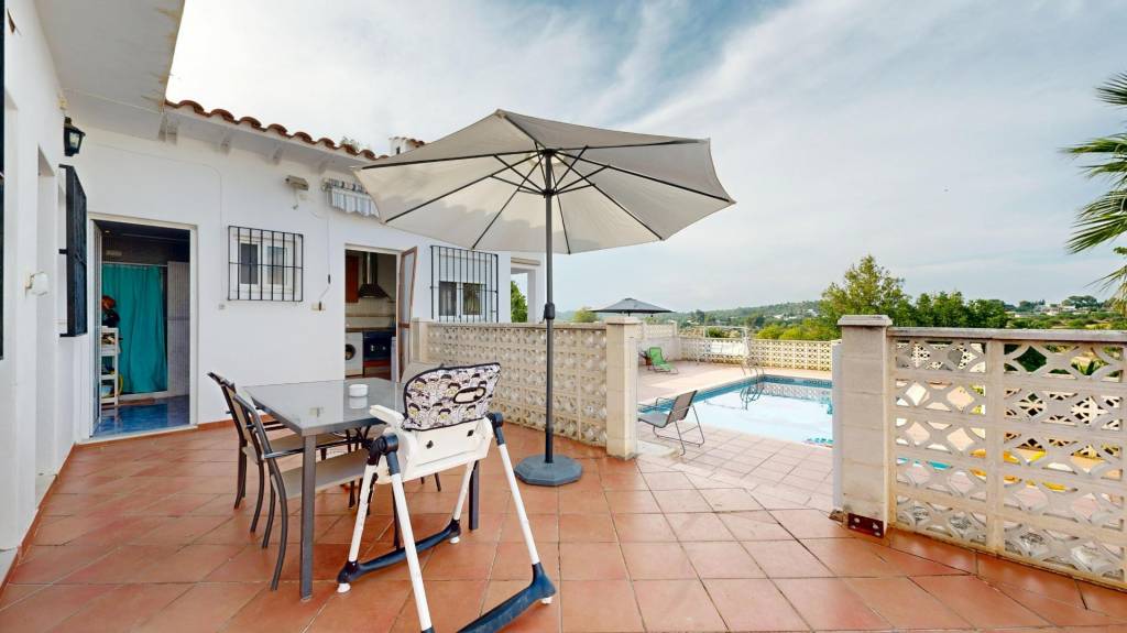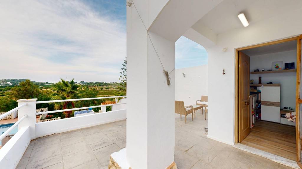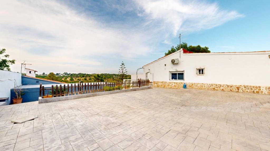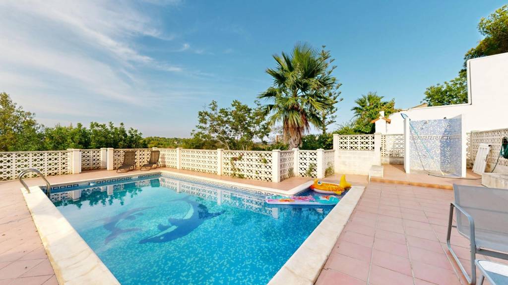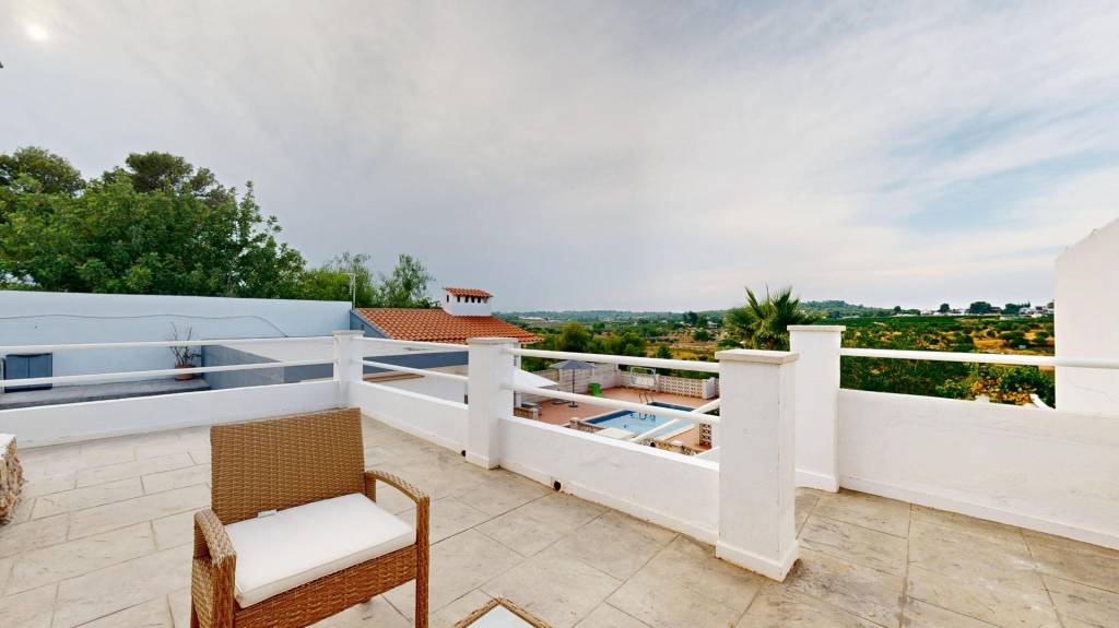 En el exterior, un amplio terreno que garantiza privacidad y espacio para disfrutar al aire libre con amplias zonas de terraza, zonas para ajardinar, una barbacoa y paellero, trastero, pozos ciegos y la joya de esta propiedad es su piscina exterior.