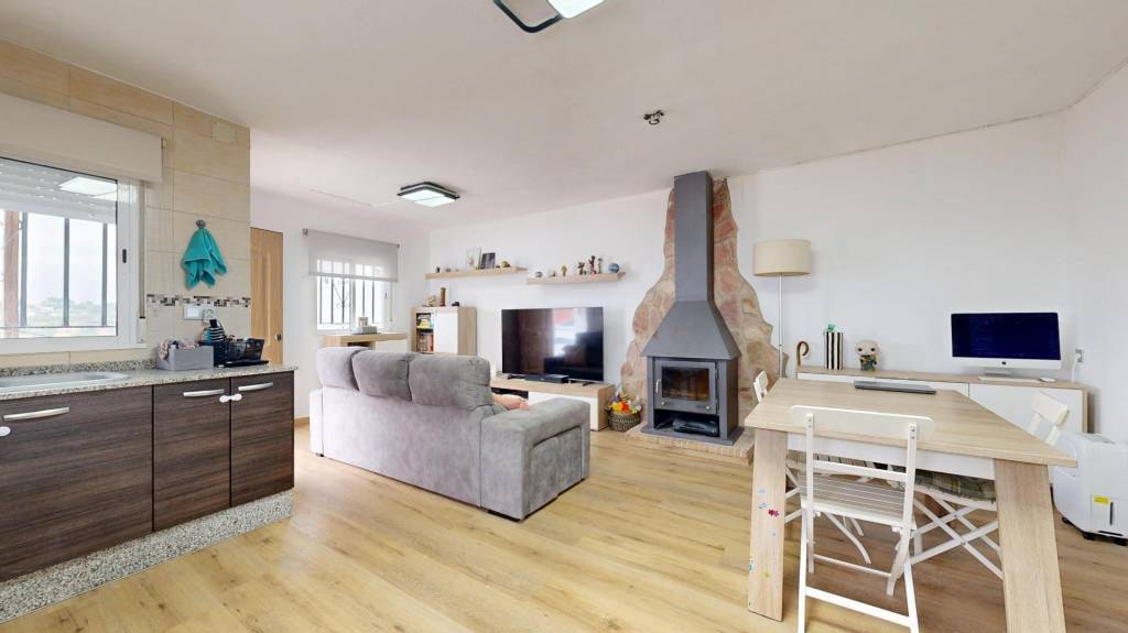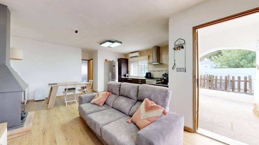 La vivienda se distribuye en una planta para mayor comodidad y confort. En esta planta, encontramos un amplio porche que da la bienvenida, con un espacio de estacionamiento para 4 vehículos y acceso directo a una terraza, con unas vistas espectaculares a la montaña, al entrar nos recibe un amplio salon/comedor con cocina integrada, totalmente equipada, el salón cuenta con una bonita chimenea de leña, Este fabuloso espacio nos da acceso a un distribuidor, donde nos encontramos dos dormitorios dobles y un baño completo equipado con plato de ducha, perfectos para la familia.