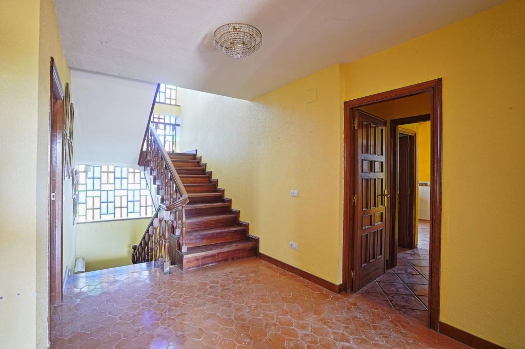 En la planta baja, una preciosa puerta de madera labrada da paso al hall de entrada que conecta con un despacho. Atravesando el hall llegamos a un amplio distribuidor que conduce al salón con chimenea y un gran ventanal. En esta misma planta se encuentra también la cocina con despensa y terraza, cuarto de calderas, gimnasio, sauna, tres baños y dos dormitorios..