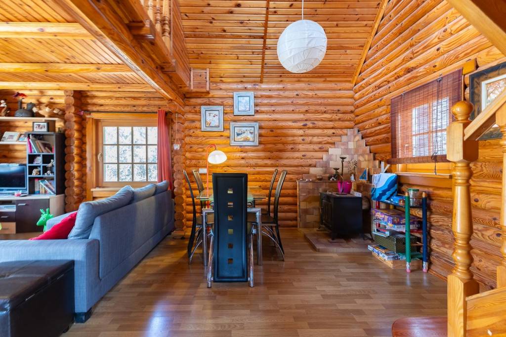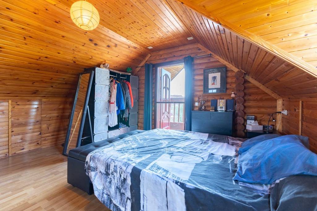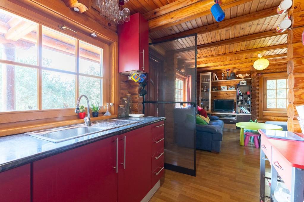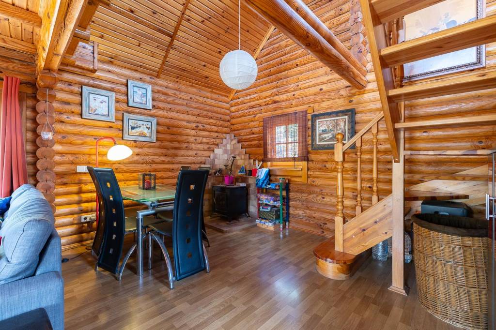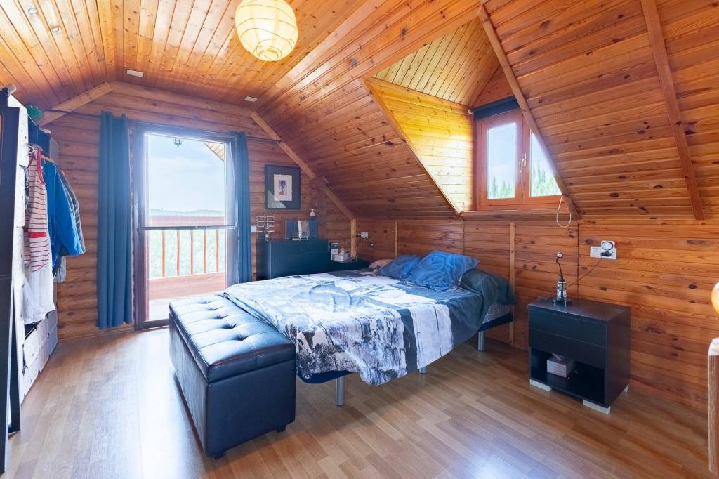 La primera de las casas con una superficie de 100 m2 está construida en madera, anclada al suelo con cimentación sólida, se compone de dos plantas y resulta ideal para disfrutar de un ambiente acogedor con familia y amigos. En la planta baja nos encontramos un bonito porche que da acceso al interior de la vivienda distribuida en un amplio salón-comedor, cocina totalmente equipada, un dormitorio doble y un baño completo. Por medio de una bonita escalera accedemos a la planta alta compuesta de una amplia estancia abuhardillada actualmente destinada a dormitorio principal con vestidor, pequeño despacho y terraza cubierta.