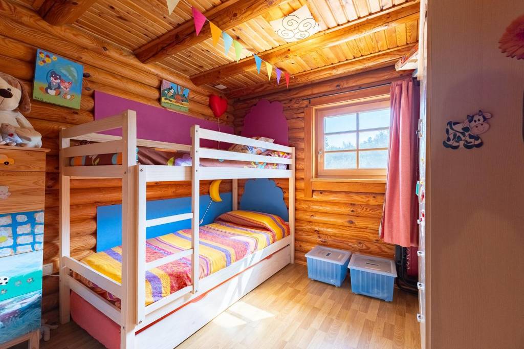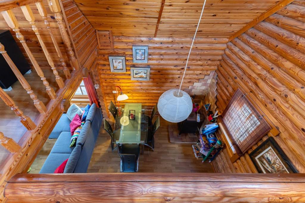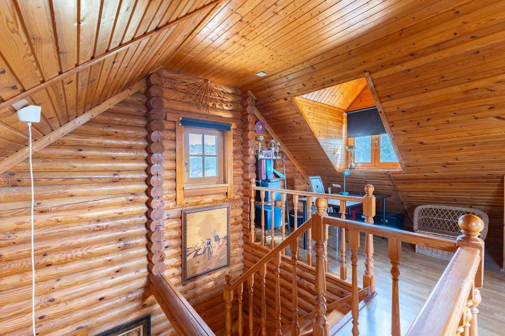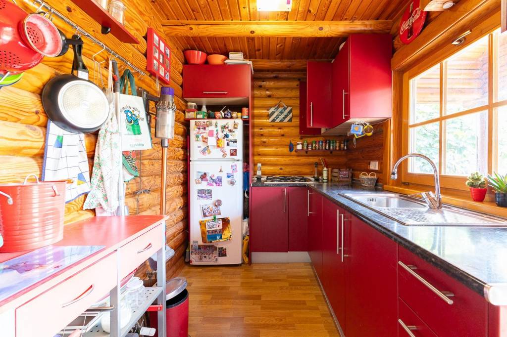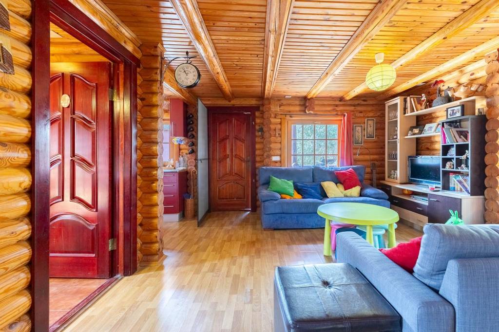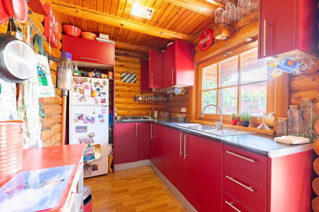 La primera de las casas con una superficie de 100 m2 está construida en madera, anclada al suelo con cimentación sólida, se compone de dos plantas y resulta ideal para disfrutar de un ambiente acogedor con familia y amigos. En la planta baja nos encontramos un bonito porche que da acceso al interior de la vivienda distribuida en un amplio salón-comedor, cocina totalmente equipada, un dormitorio doble y un baño completo. Por medio de una bonita escalera accedemos a la planta alta compuesta de una amplia estancia abuhardillada actualmente destinada a dormitorio principal con vestidor, pequeño despacho y terraza cubierta.