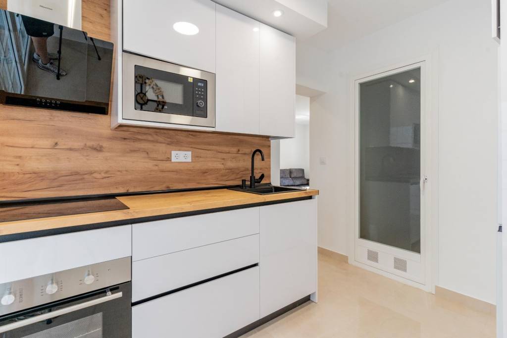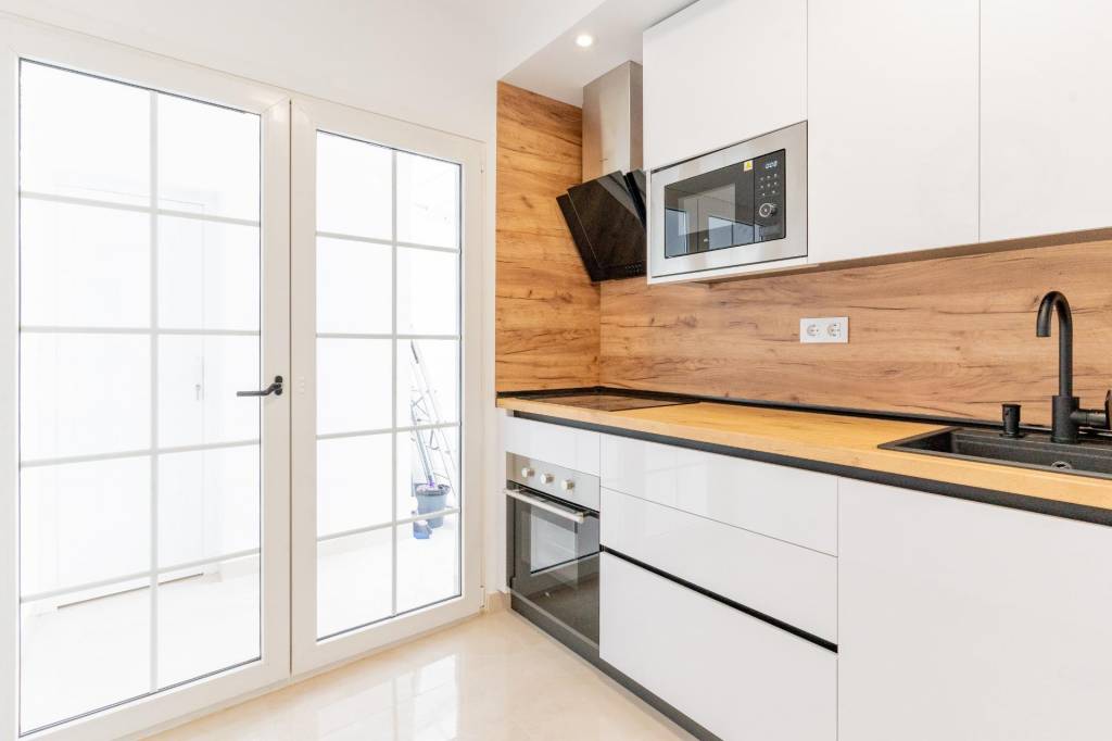 En la planta baja encontramos un amplio garaje con capacidad para un vehículo, un salón comedor con acceso desde una entrada abierta que aporta amplitud y luminosidad, un baño completamente reformado, un dormitorio y una cocina moderna equipada con electrodomésticos nuevos a estrenar, con salida a un patio semitechado con zona de lavadero.