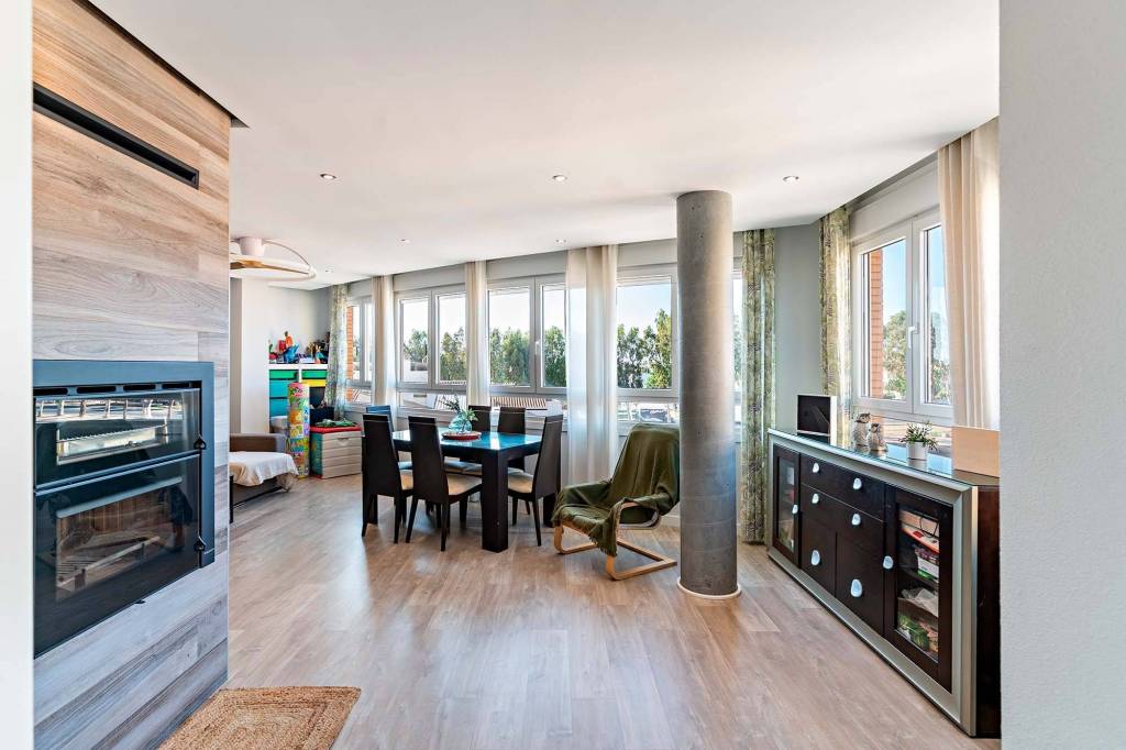 Los 10 ventanales del salón ofrecen unas vistas despejadas hacía el sur y el oeste que regala muchisima luz natural a esta vivienda que además tiene ventanas en cada habitación (baños también).