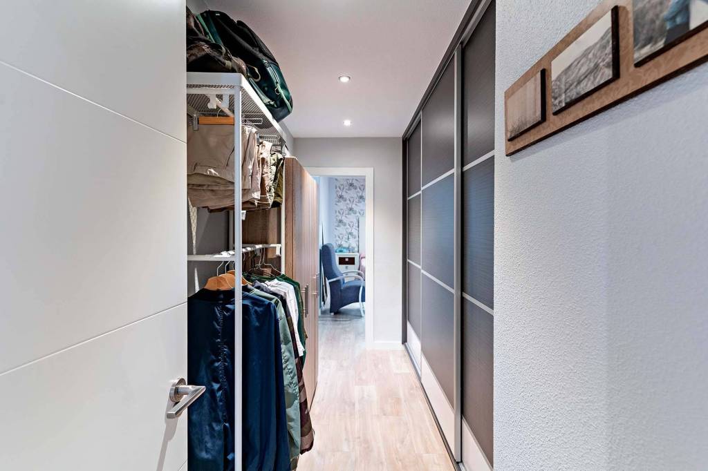 Por no hablar de la anchura y del espacio que ofrece tanto de conjunto de armarios cómo de almacenaje, gracias a su vestidor walk in Through y a su trastero cerrado y con puerta de pvc de 5m2 aproximadamente en la azotea del edificio .