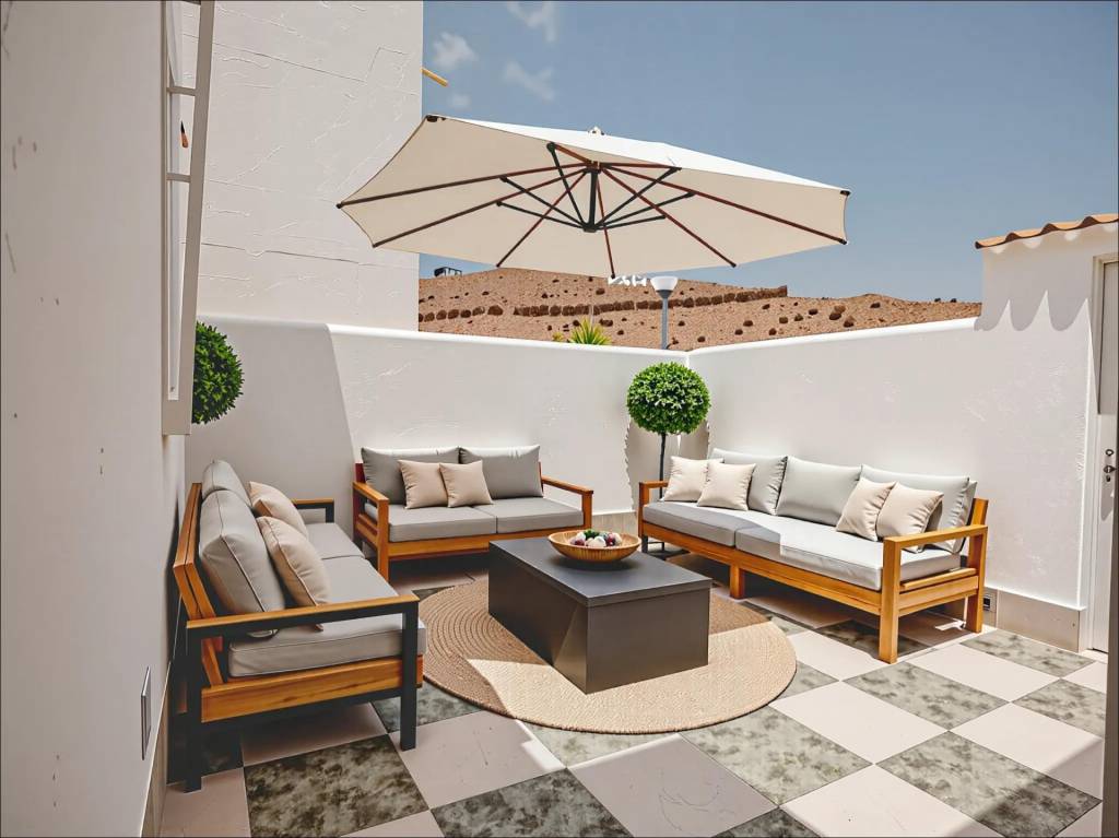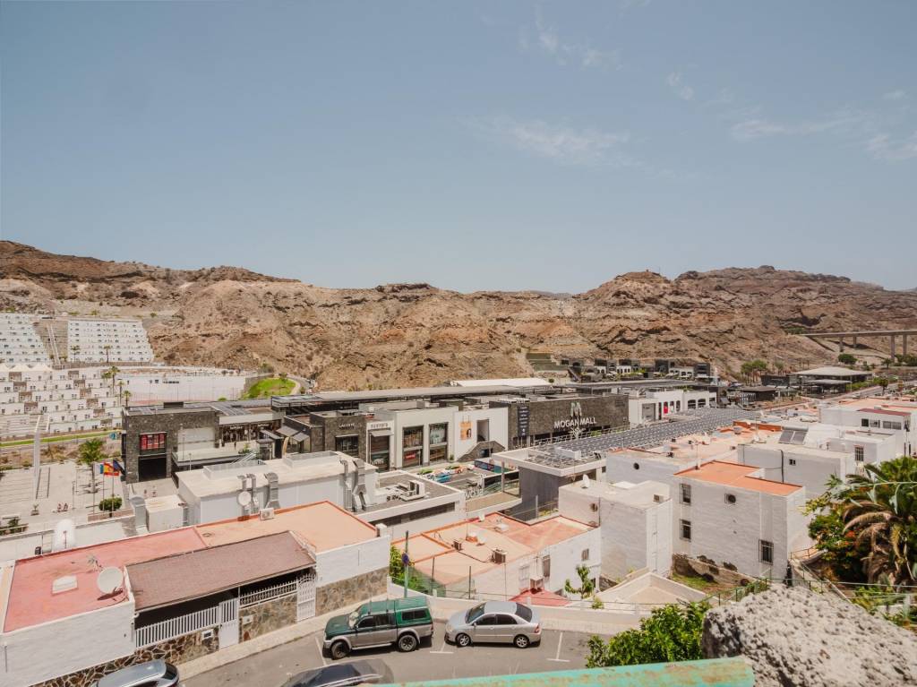Uno de sus grandes atractivos es la amplia terraza, ideal para desayunar al aire libre, relajarte después de la jornada o simplemente disfrutar del clima privilegiado del sur de la isla. Desde aquí podrás contemplar las vistas al Centro Comercial Mogán Mall, un punto de referencia en la zona con una amplia oferta de tiendas, restaurantes, ocio y servicios a pocos pasos de casa.