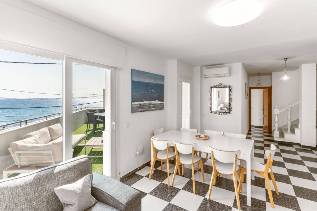 Imagina despertar cada mañana con el sonido de las olas y el fresco aroma del Mediterráneo. El amplio salón, con sus grandes ventanales, a la terraza, se convierte en el corazón de la casa, ofreciendo un espacio perfecto para disfrutar de inolvidables veladas con vistas panorámicas. La cocina, espaciosa y funcional, está lista para que crees tus mejores recetas mientras la brisa marina entra por la ventana.