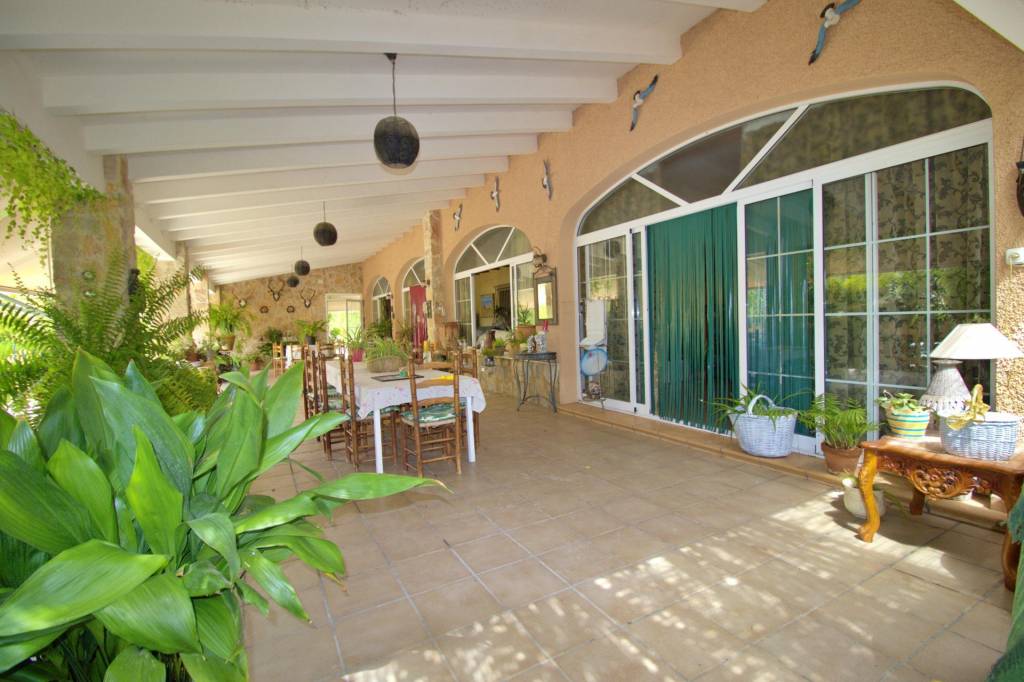 🌞 Desde allí se accede a otro inmenso porche abierto, con vistas al jardín y a la zona de la piscina, que también cuenta con su propio baño y vestuario; todo ello completa un escenario único para las mejores reuniones y momentos de tus invitados.