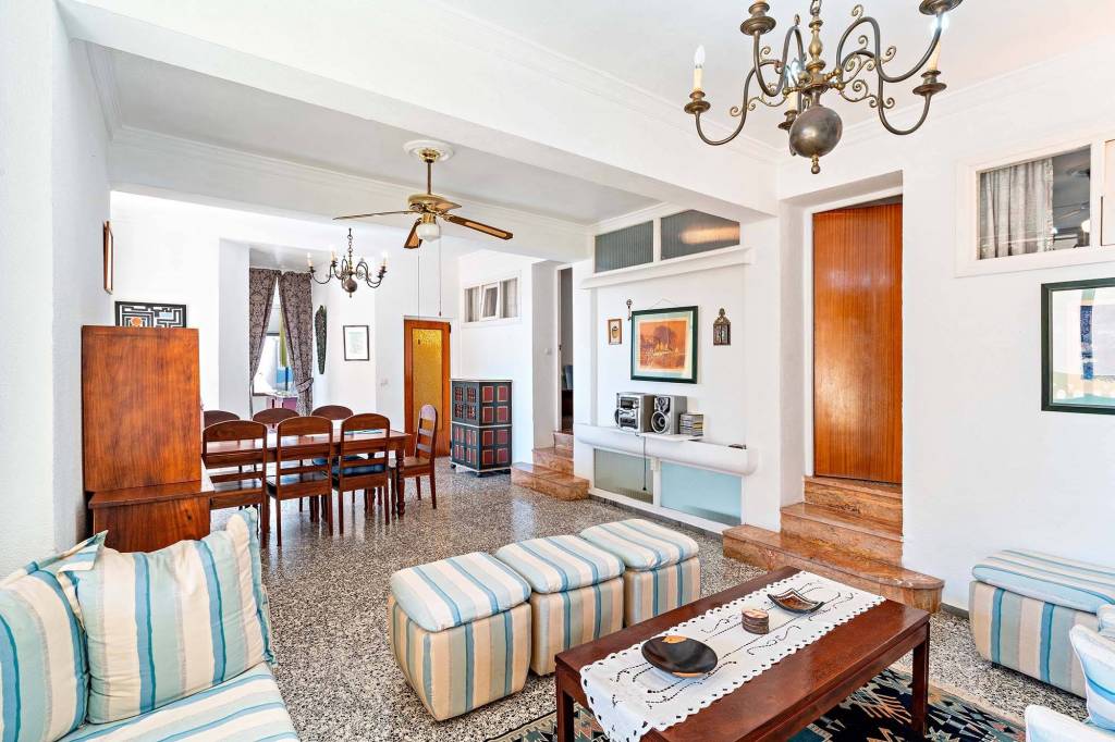 Un salón amplio que se abre al comedor y al despacho, todo con ventanas exteriores que inundan las estancias de luz natural y ventilación cruzada.
