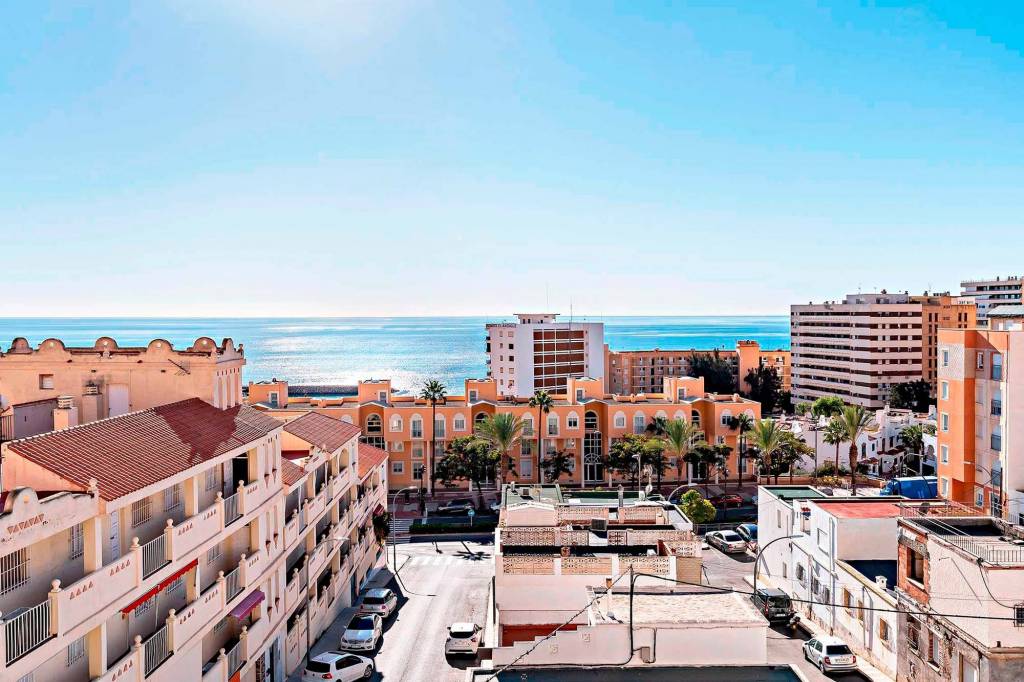 La segunda planta ofrece un gran salón comedor con salida a una terraza interior de unos 25 m² con vistas al mar, cocina independiente, tres dormitorios (dos de ellos comparten un baño de grandes dimensiones) y un porche exterior con barbacoa, perfecto para disfrutar del clima de Aguadulce durante todo el año.