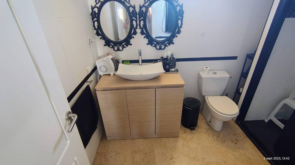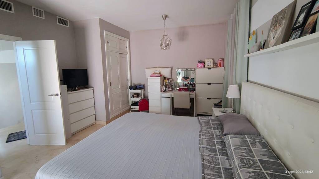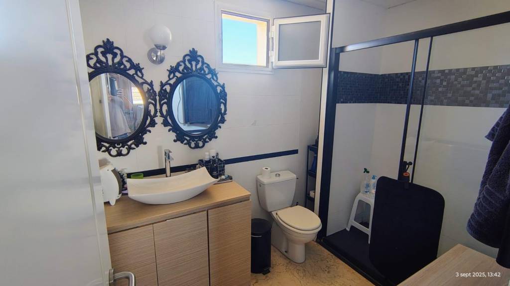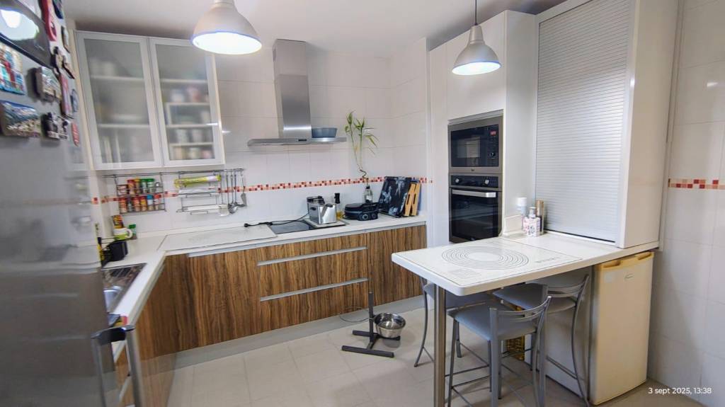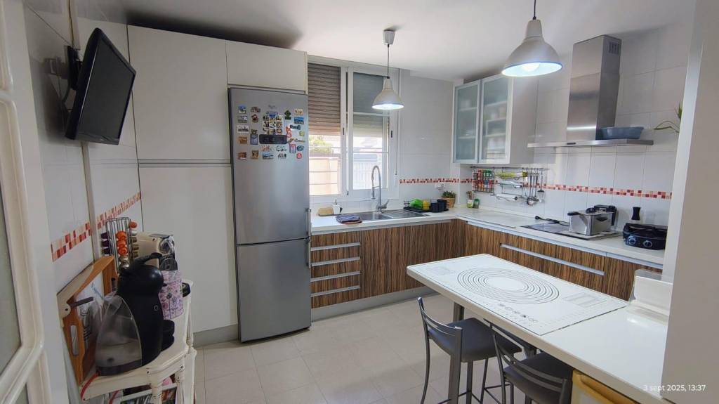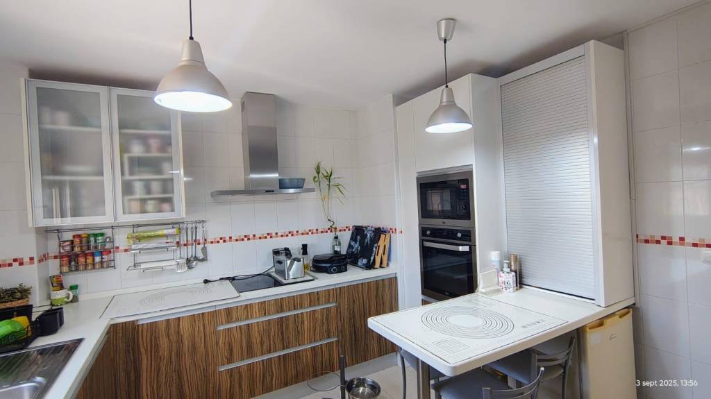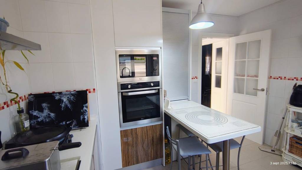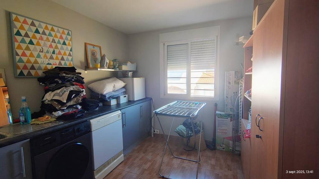 La cocina, diseñada para los amantes de la gastronomía, es un espacio donde la creatividad puede florecer. Desde aquí, accede al jardín con hormigón impreso que imita la madera, un lugar ideal para relajarse o celebrar reuniones al aire libre. En la planta alta, se sitúa un dormitorio (anteriormente dos) con armarios empotrados y un baño completo, brindando comodidad y privacidad. La terraza cerrada con lavadero añade funcionalidad a este hogar.