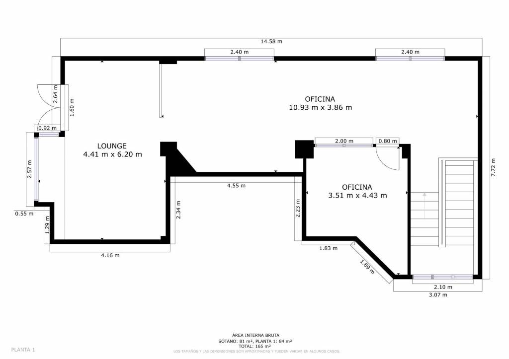 El inmueble destaca por la gran altura de techos en ambas plantas y una fachada de 8 metros que aporta gran visibilidad. Actualmente cuenta con licencia de oficina y aforo autorizado para 16 personas.