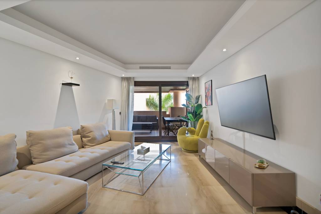 Exclusiva vivienda en primera línea de playa, ubicada en el prestigioso complejo Bahía de la Plata, en Estepona.