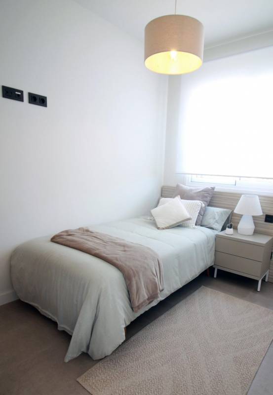 Complejo residencial de obra nueva de bungalow apartamentos con piscina comunitaria en Torre de la Horadada situado a 800m de la playa.
