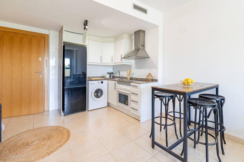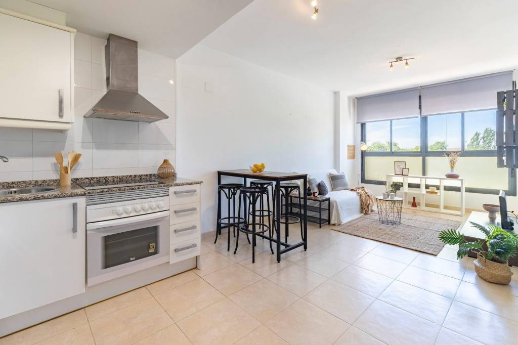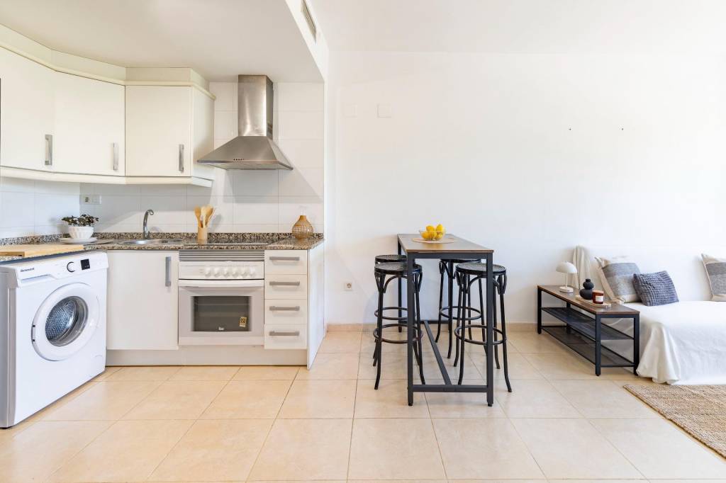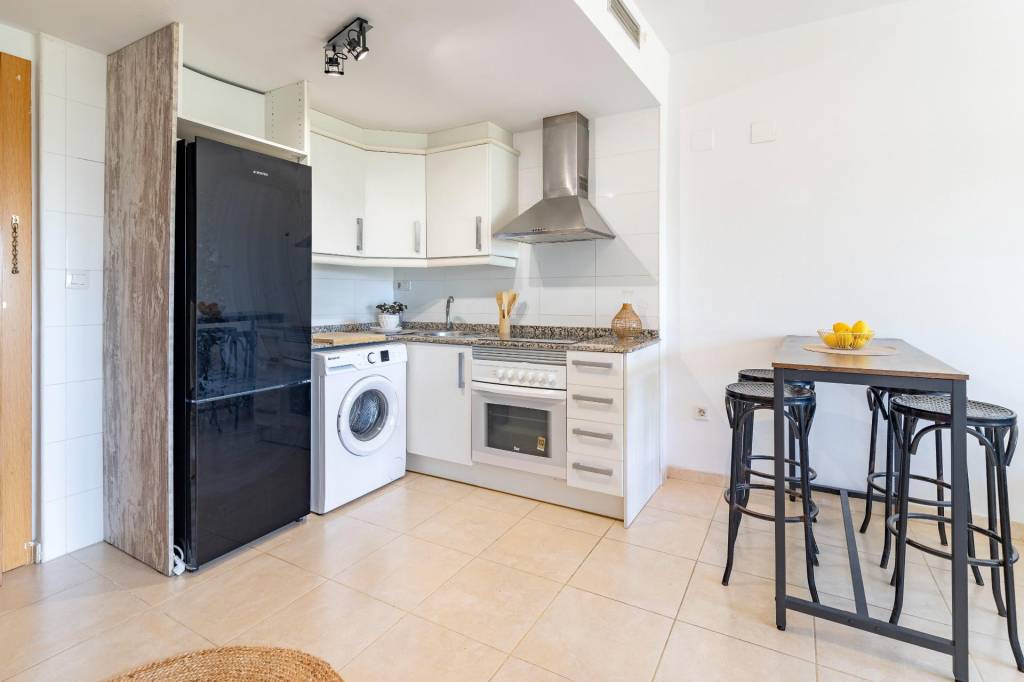 La cocina abierta al salón crea un espacio cálido y moderno, ideal para compartir momentos, cocinar acompañado o simplemente relajarte después de un día de trabajo. Aquí, cada rincón está pensado para aprovechar al máximo la luz y la comodidad.