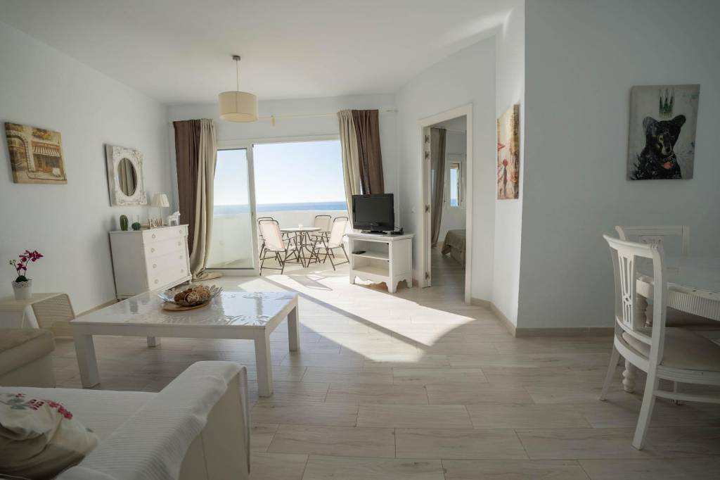 *Salón amplio y muy luminoso, con acceso directo a la terraza y al sonido del mar.