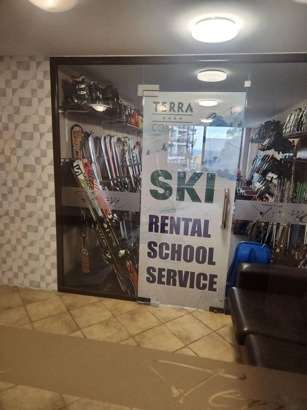 El complejo «Terra» ofrece diversas comodidades y servicios, entre las que se incluyen recepción 24 horas, seguridad las 24 horas, videovigilancia, acceso controlado, bar en el vestíbulo, restaurante, centro de spa con sauna, jacuzzi, baño turco, camas de agua caliente, gimnasio bien equipado, piscina cubierta y al aire libre, bar en la piscina, jardín, parque infantil, sala de esquí, sala de conferencias y lanzaderas a la estación inicial del teleférico en Bansko.
