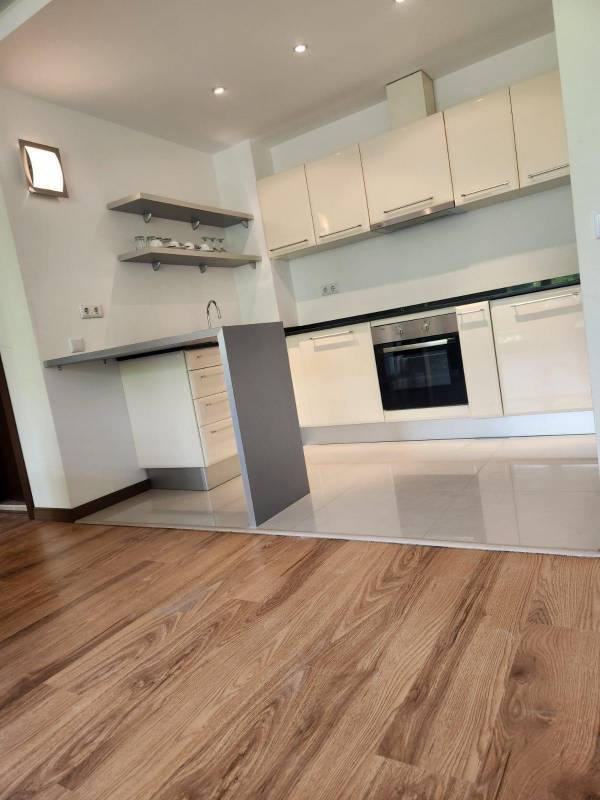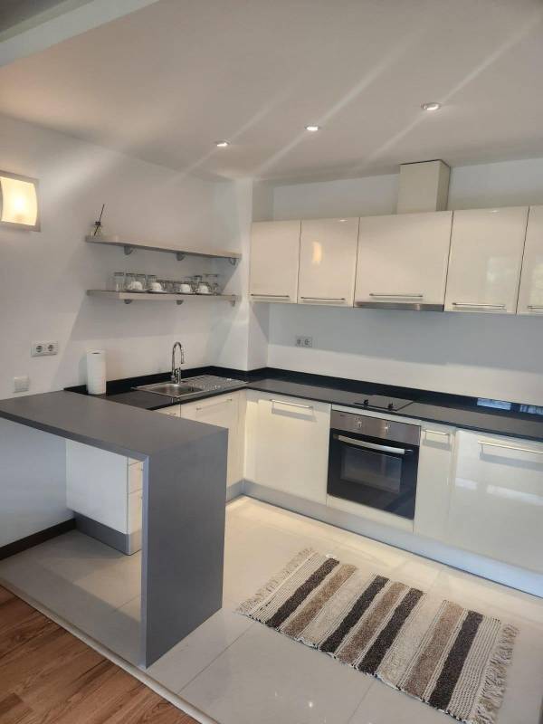 La propiedad está situada en la segunda planta y consta de un vestíbulo, dos dormitorios, uno de ellos principal con baño independiente con inodoro y bañera, un segundo dormitorio soleado, un cuarto de baño adicional con inodoro y cabina de ducha, un amplio salón con cocina totalmente equipada, un comedor y una zona de descanso con cómodos muebles, y una terraza con orientación sur.