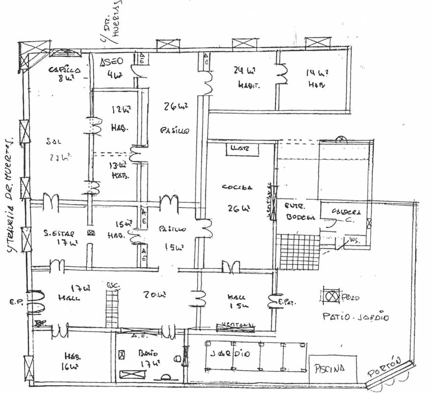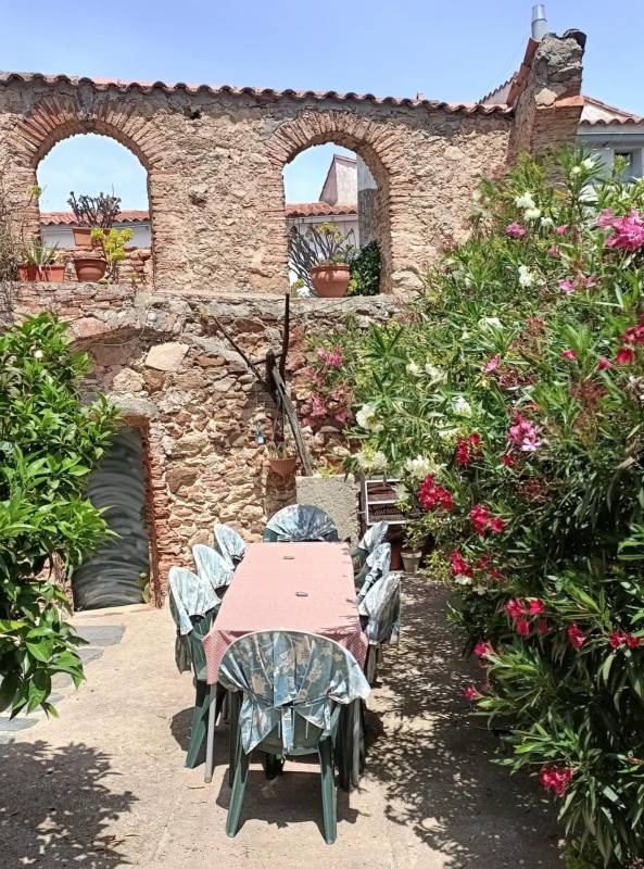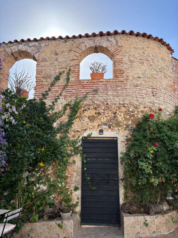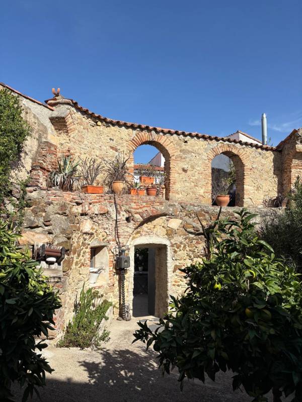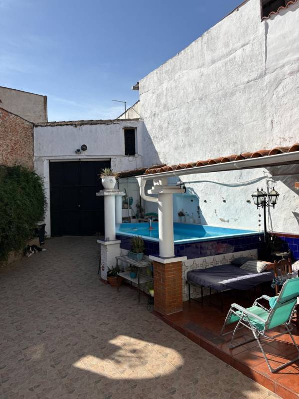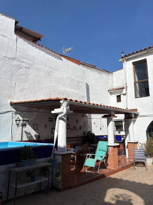 La edificación consta de 3 plantas, baja, intermedia y superior y se asienta sobre una parcela de 549 m2. Dispone de un patio trasero con piscina de recreo, pozo operativo y una parcela ajardinada edificable de 251 m2 que se usa como terraza, con árboles frutales y salida a 2 calles, así como un porche para el aparcamiento de un vehículo. El patio y la parcela están separados por un precioso muro de piedra y ladrillo visto, adornado con arcos que aportan un encanto especial al conjunto.