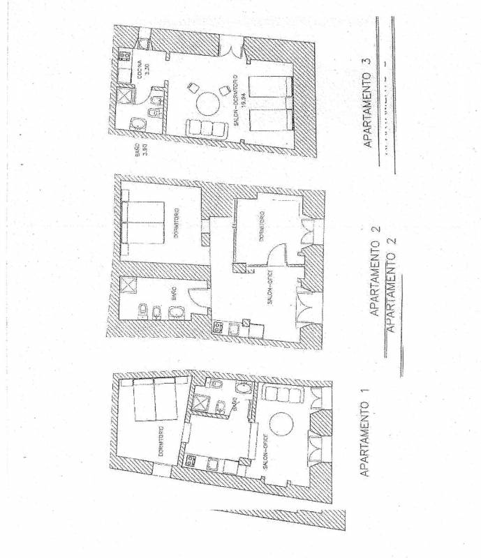 La planta baja está adaptada como 3 apartamentos rurales (2 de un dormitorio y 1 de 2 dormitorios), además de un 4º apartamento en bruto utilizado como almacén.