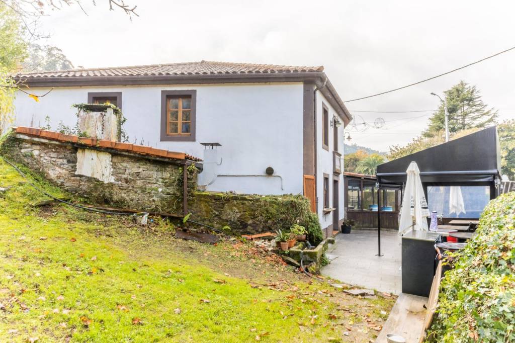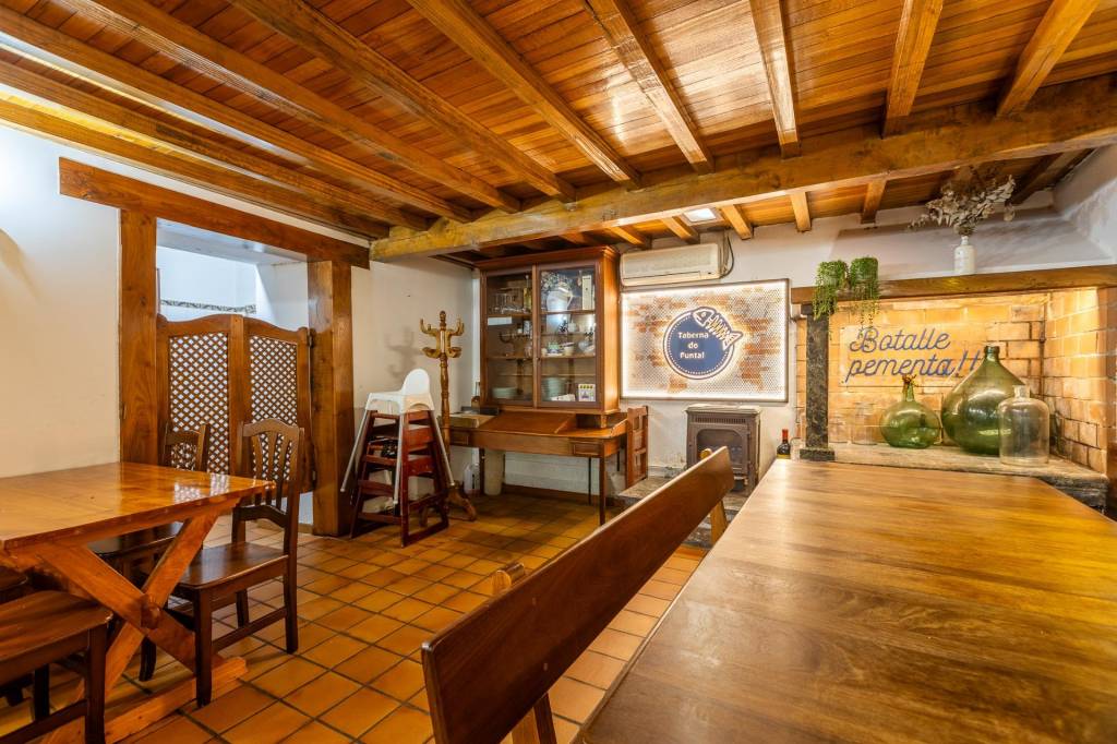 En la planta baja contamos con un restaurante totalmente equipado y listo para empezar a trabajar, con cocina y zona de frios, comedor, terraza exterior y zona de barra o cafetería, lareira y capacidad para 45 comensales, ampliable a 90 en la temporada veraniega sumando la terraza y un almacén en el exterior.