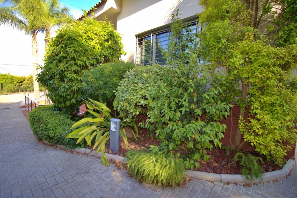 Dispone de un pequeño patio con una superficie aproximada de 118 m², dividido en dos partes por un camino que lo atraviesa.