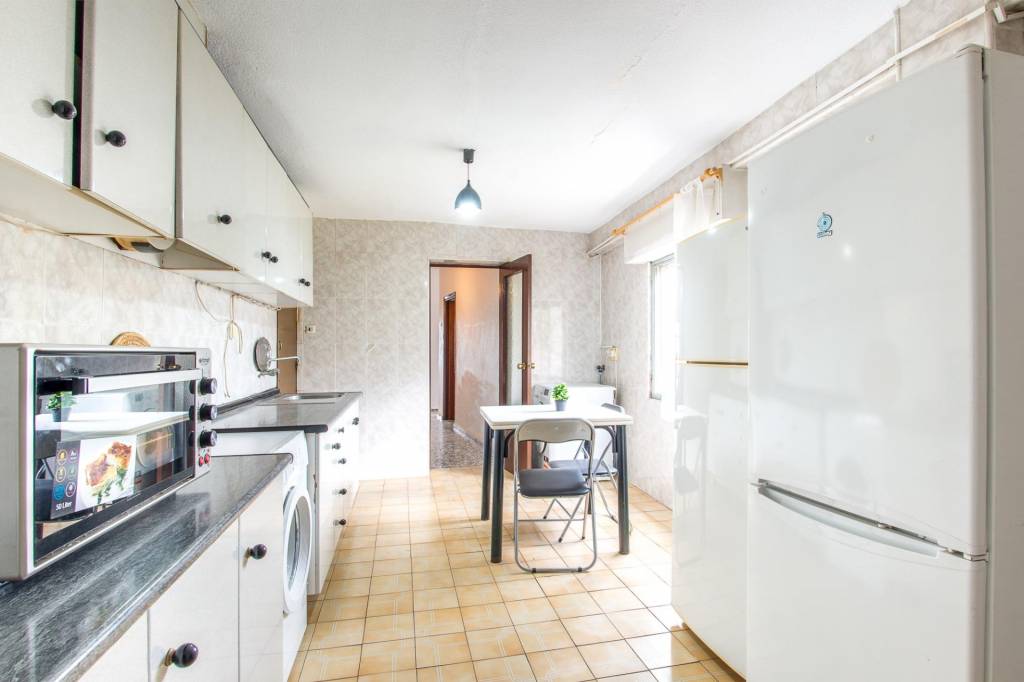 La cocina, funcional y bien distribuida, ofrece todo lo necesario para el día a día, con posibilidades de personalización según tus gustos.