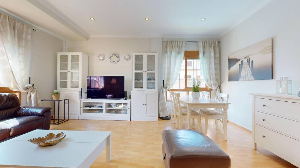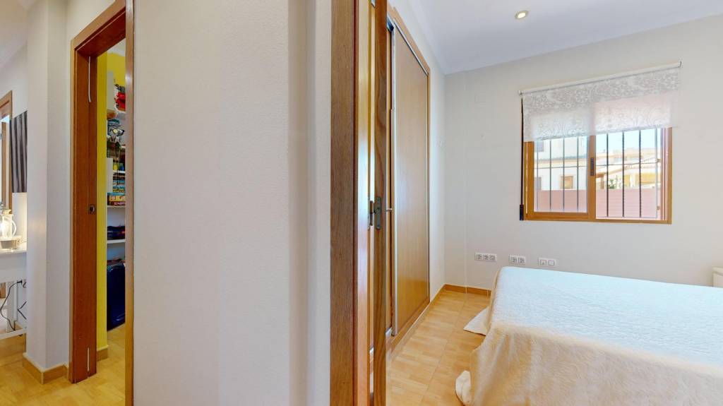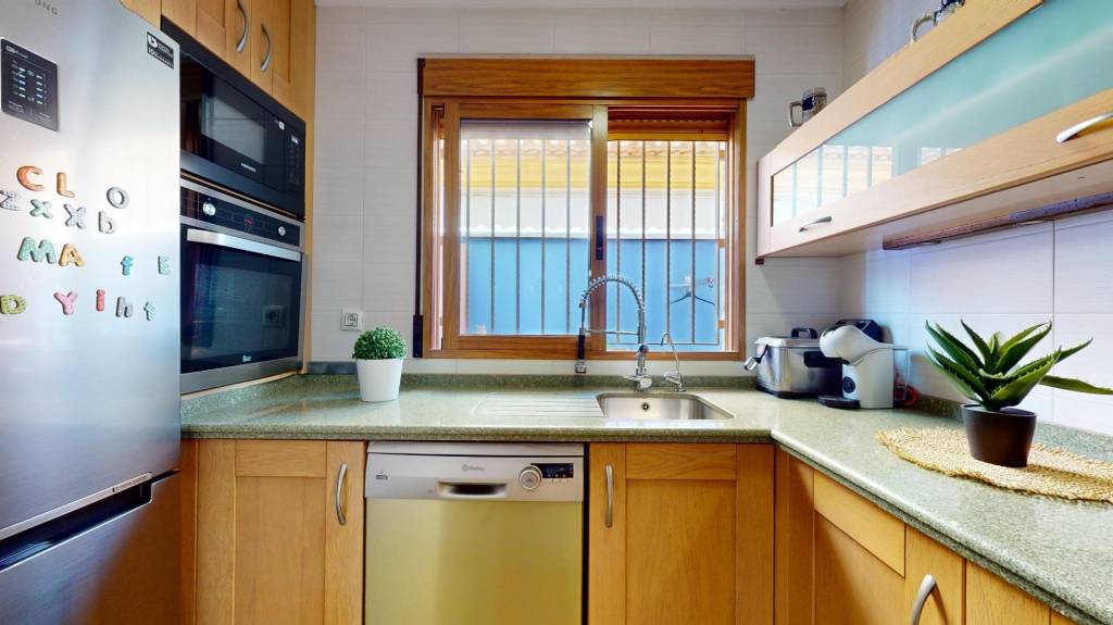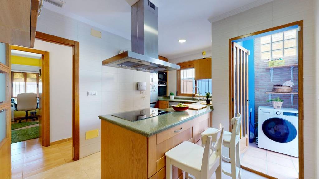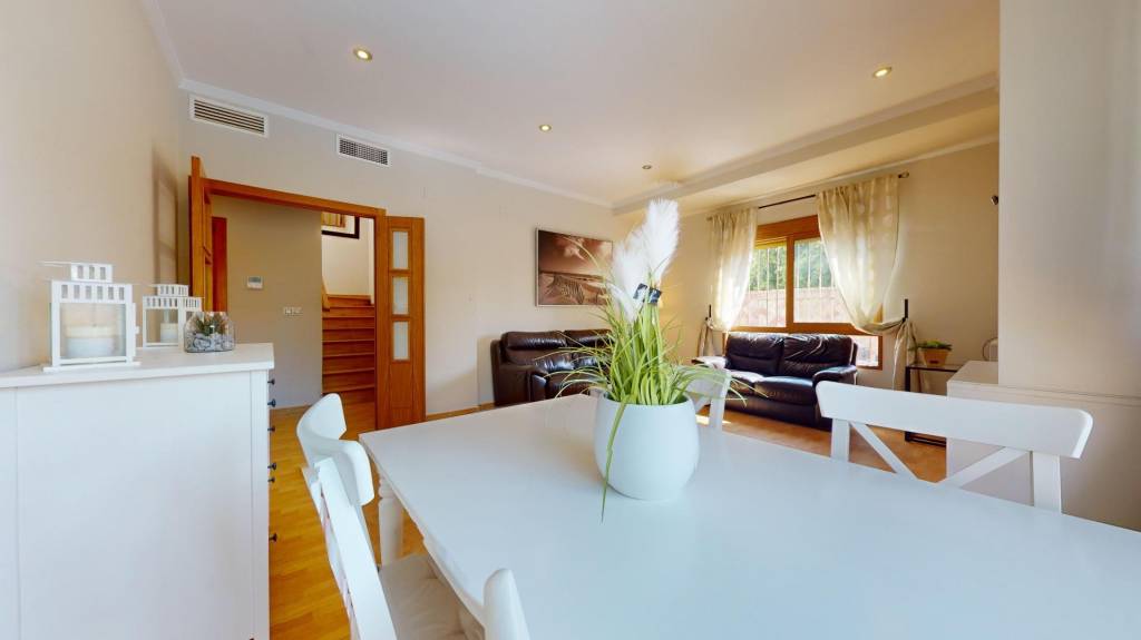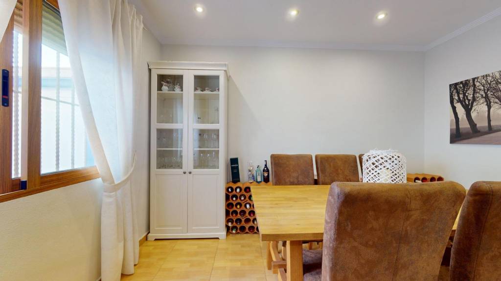 La propiedad cuenta con 159 m² construidos sobre una parcela de 300 m² esquina a dos calles. La planta baja dispone de 3 amplios dormitorios, todos con armarios empotrados, un baño completo y un luminoso salón comedor es ideal para reuniones familiares, mientras que la cocina moderna con barra y despensa se complementa con un acogedor comedor contiguo.